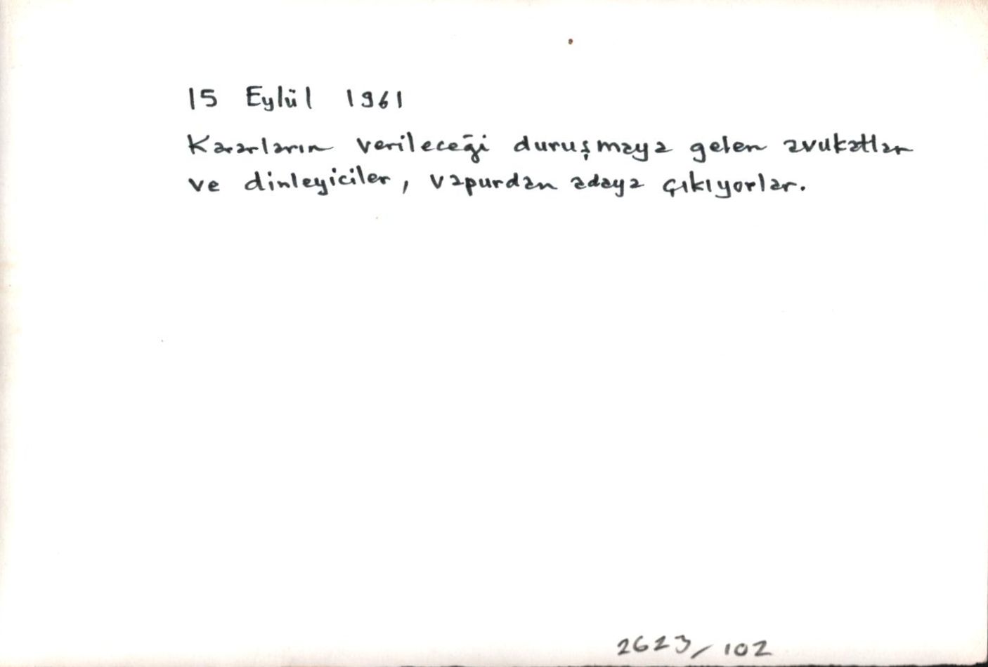 Yassıada: "15 Eylül 1961 - Kararların verileceği duruşmaya gelen avukatlar ve dinleyiciler, vapurdan adaya çıkıyorlar", 18x12 cm