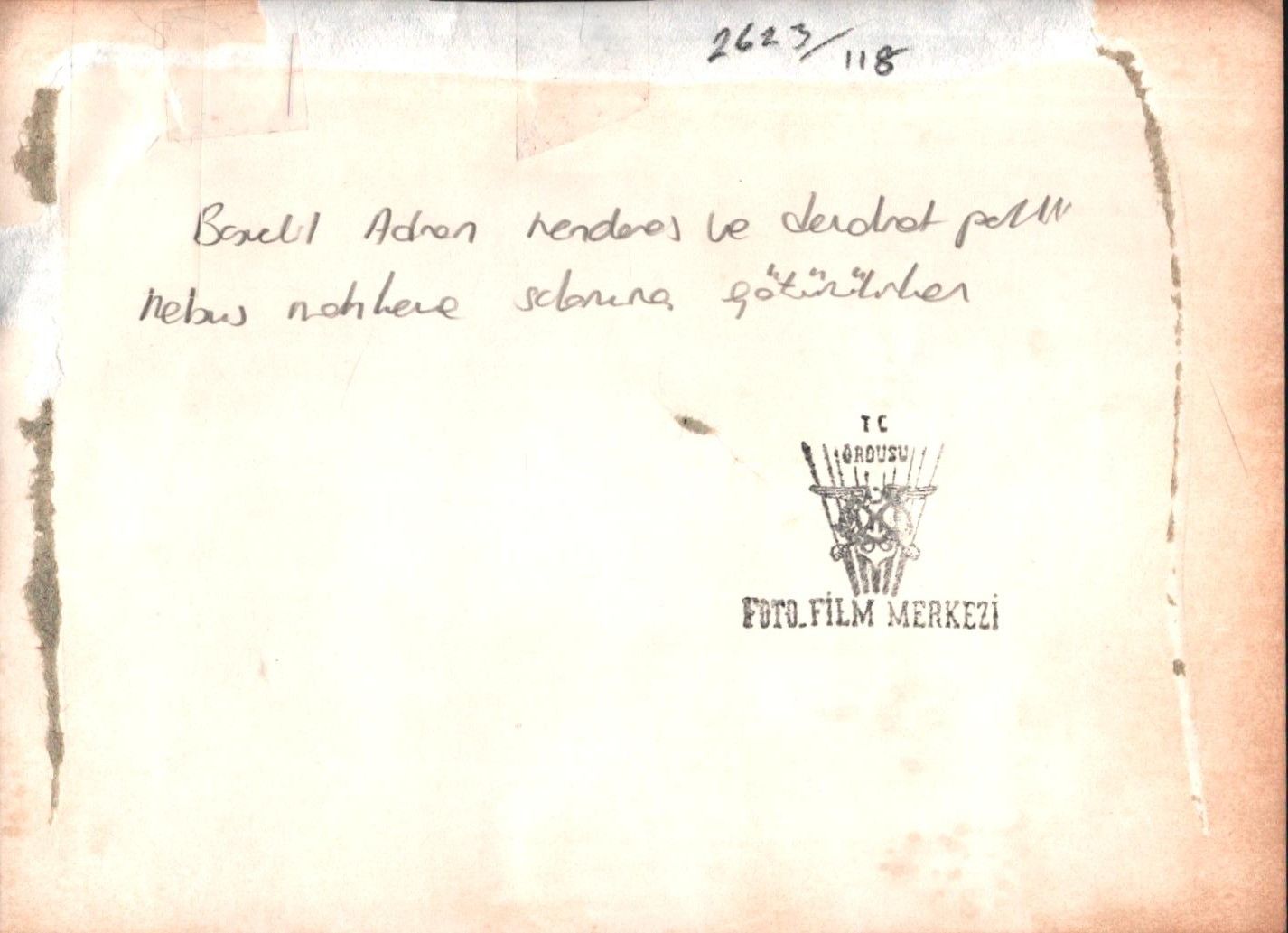 Adnan Menderes ve Demokrat Partili bir vekil askerler eşliğinde mahkeme salonuna doğru yürürken, "T.C. Ordusu Foto Film Merkezi", 18x13 cm