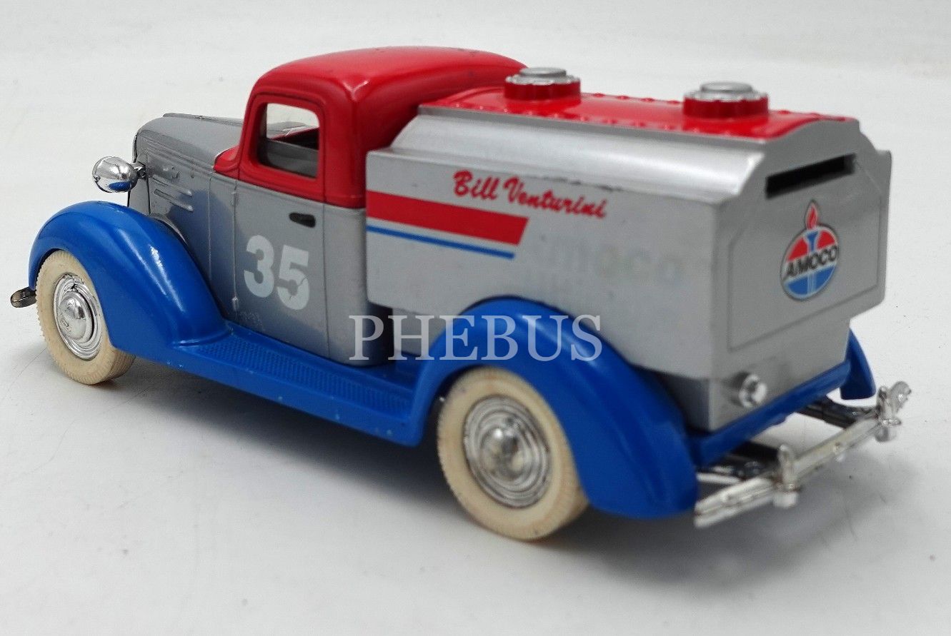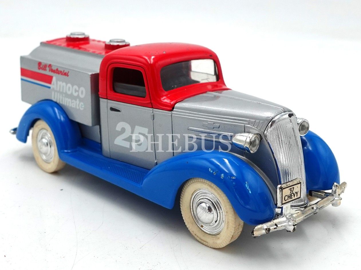 Çin malı LIBERTY CLASSICS marka 37 CHEVY model limitli üretim yarış pilotu BILL VENTURINI temalı oyuncak araba formunda metal kumbara, 16x6x5 cm