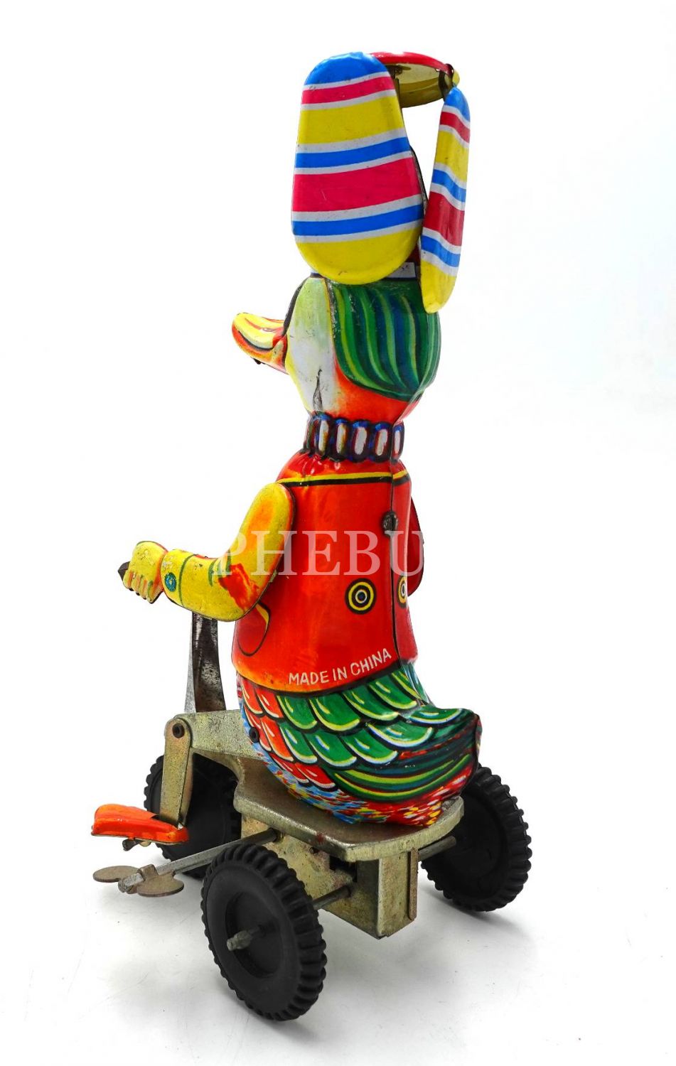 Çin malı, ördek formunda kurmalı teneke oyuncak, 20x10 cm