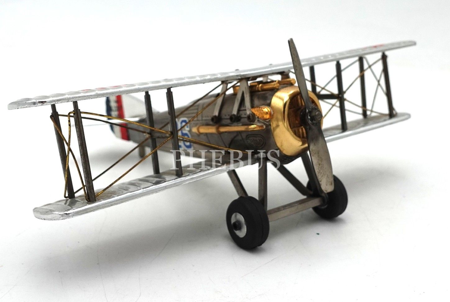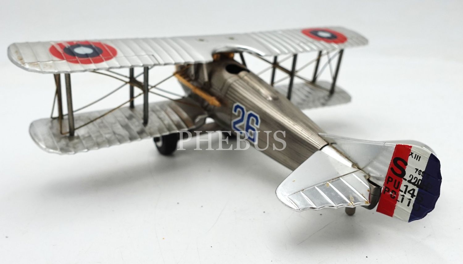 SPAD S.XIII model metal I. Dünya Savaşı Fransız avcı uçağı maketi, 20x16x6 cm
