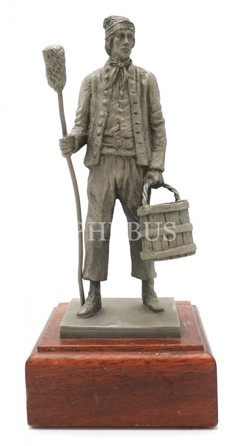 Ünlü Amerikan heykeltıraş Lloyd Lillie tarafından imal edilmiş, American Chronicle Collection koleksiyonundan meşale çubuğu taşıyan kurşun heykel, 20x8x8 cm