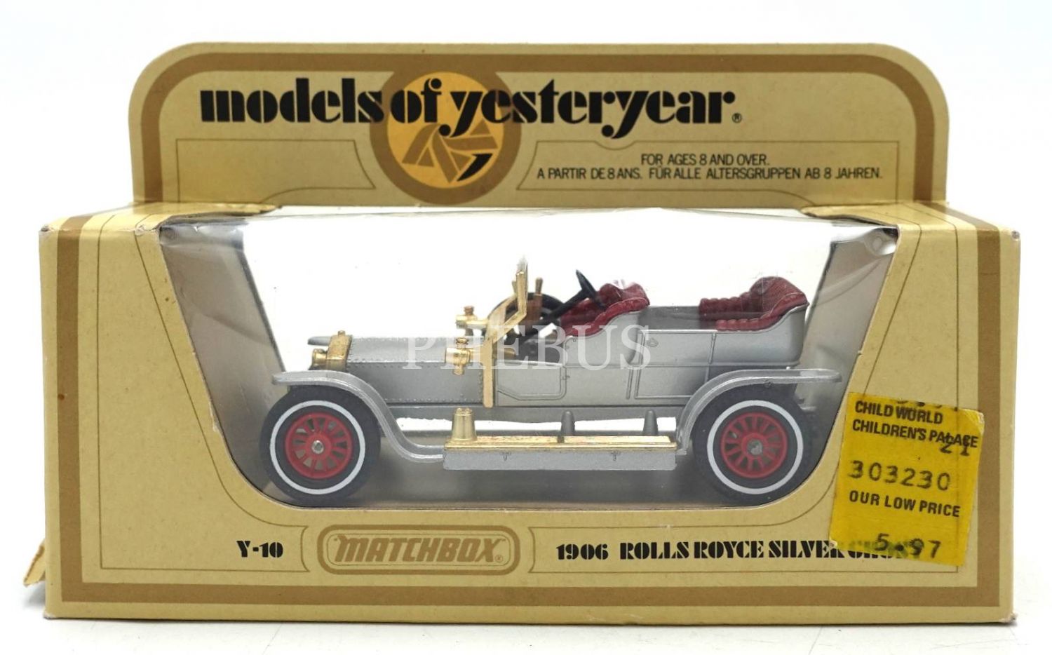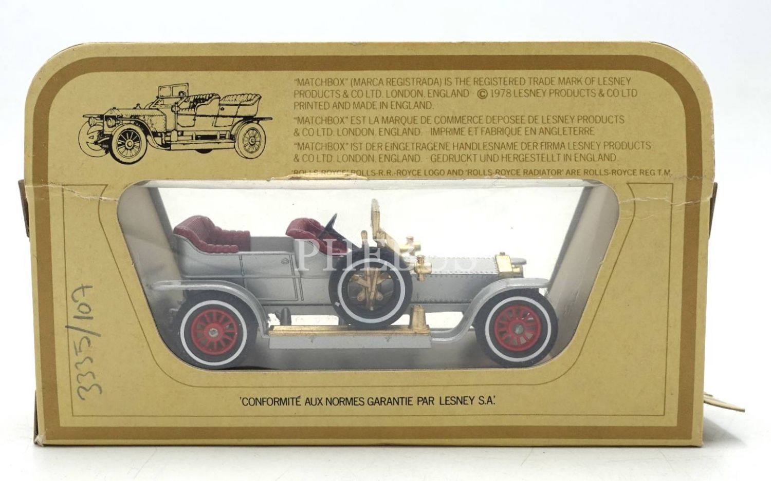 İngiliz malı MATCHBOX marka 1906 ROLLS ROYCE SILVER GHOST model oyuncak araç, kutusunun sol tarafında kırık mevcut haliyle, kutu:15x9x4 cm