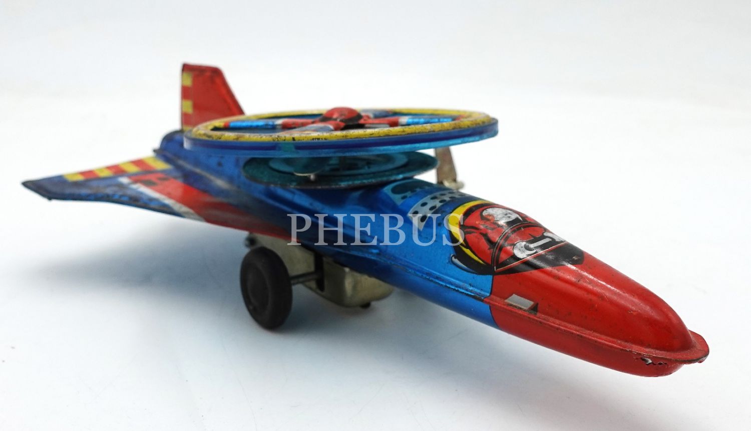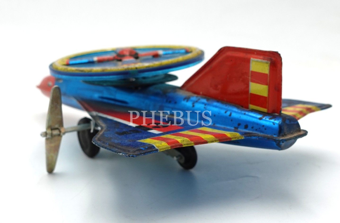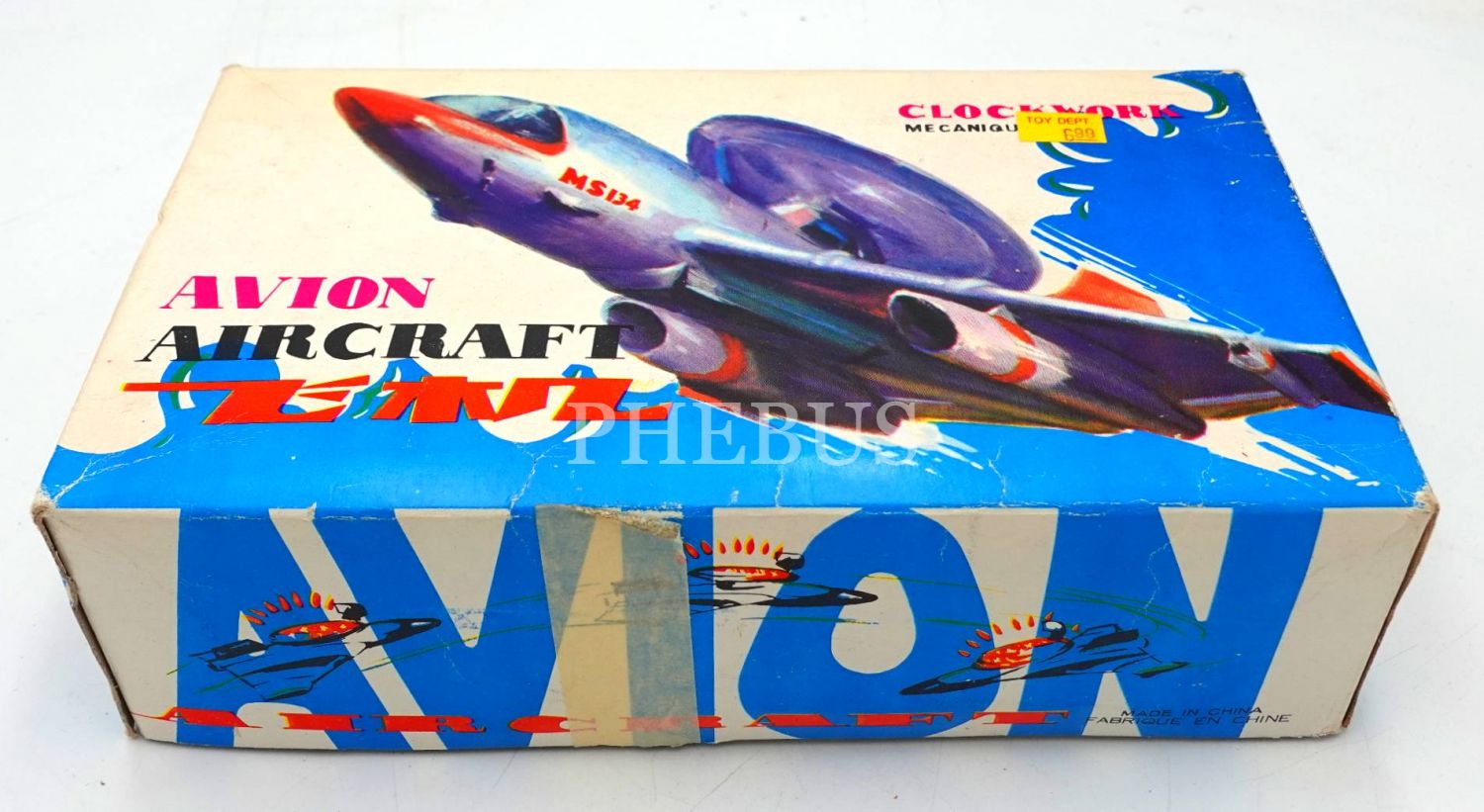 Döneminin orijinal kutusunda Çin malı kurmalı oyuncak uçak, kutusu bantlanmış haliyle, 23x13x6 cm, kutu: 23x13x8 cm