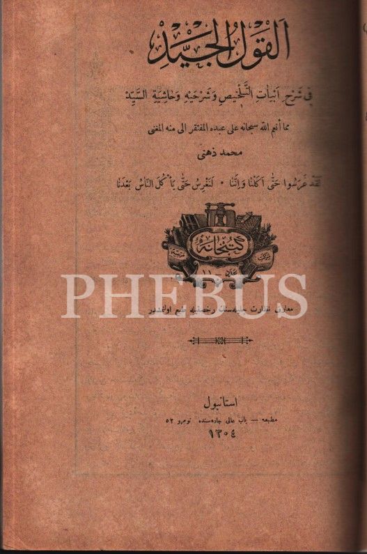 EL-KAVLÜ´L-CEYYİD, Mehmed Zihni, İstanbul 1304, 672 s., 16x24 cm