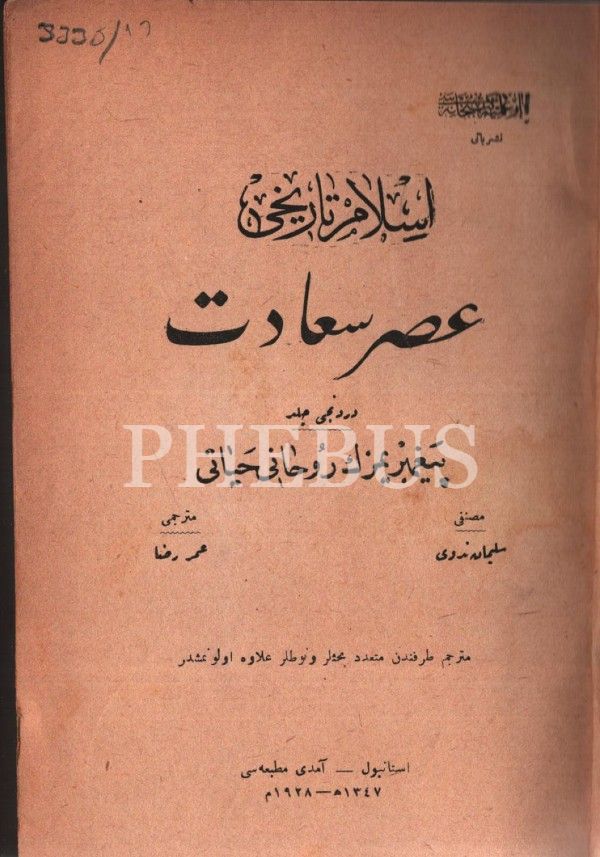 Ömer Rıza Doğrul´dan son devir idareci ve düşünürlerinden Mehmed Ali Ayni´ye ithaf ve imzalı İSLÂM TÂRÎHİ- ASR-I SAÂDET (1, 3 ve 4. Cilt), Mevlana Şibli- Süleyman Nedvi, çev. Ömer Rıza, Amedi Matbaası, İstanbul 1928, 15x20 cm