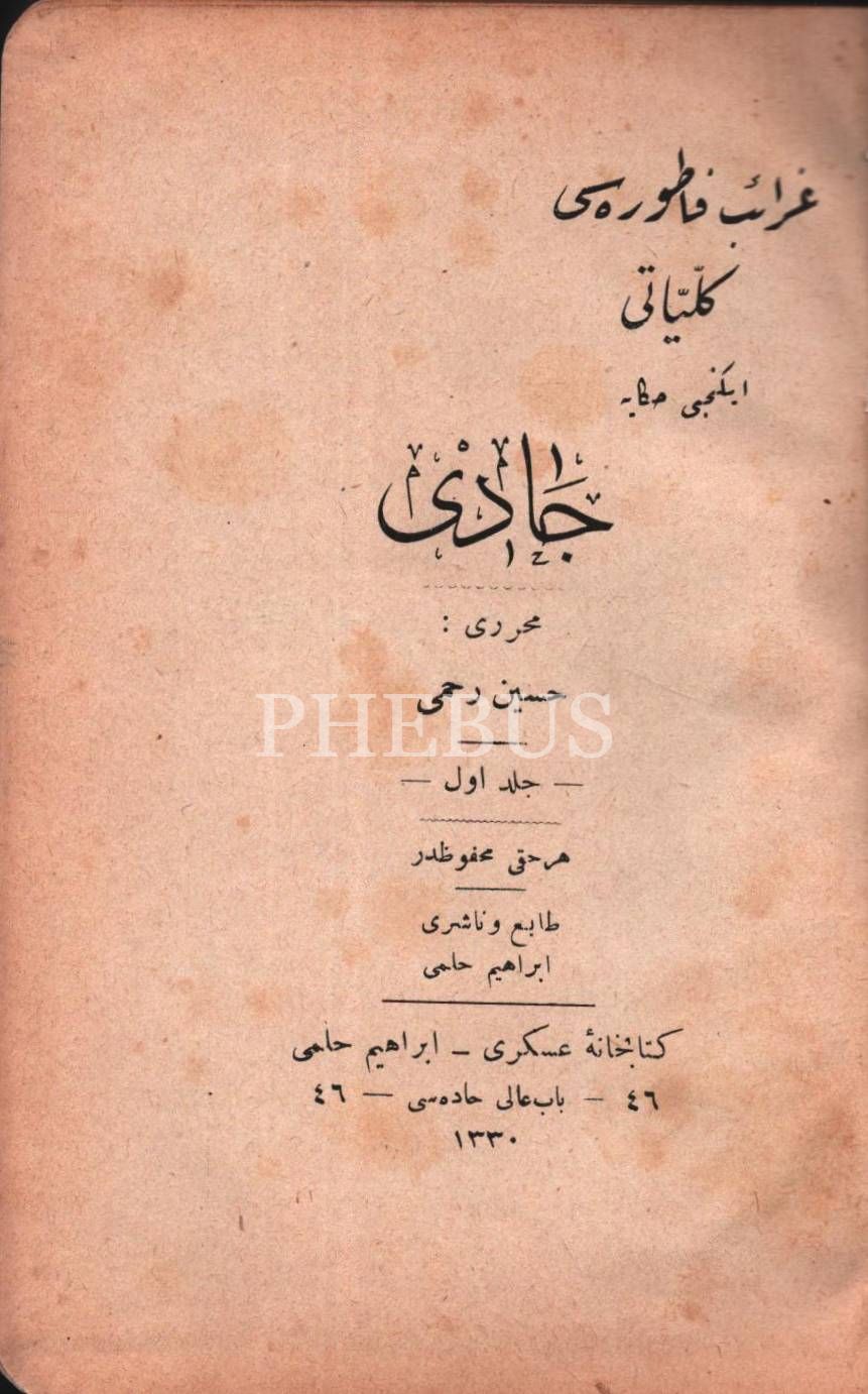 CADI (1. Cilt), Hüseyin Rahmi [Gürpınar], Matbaa-i Hayriye ve Şürekası, İstanbul 1330, 355 s., 12x18 cm