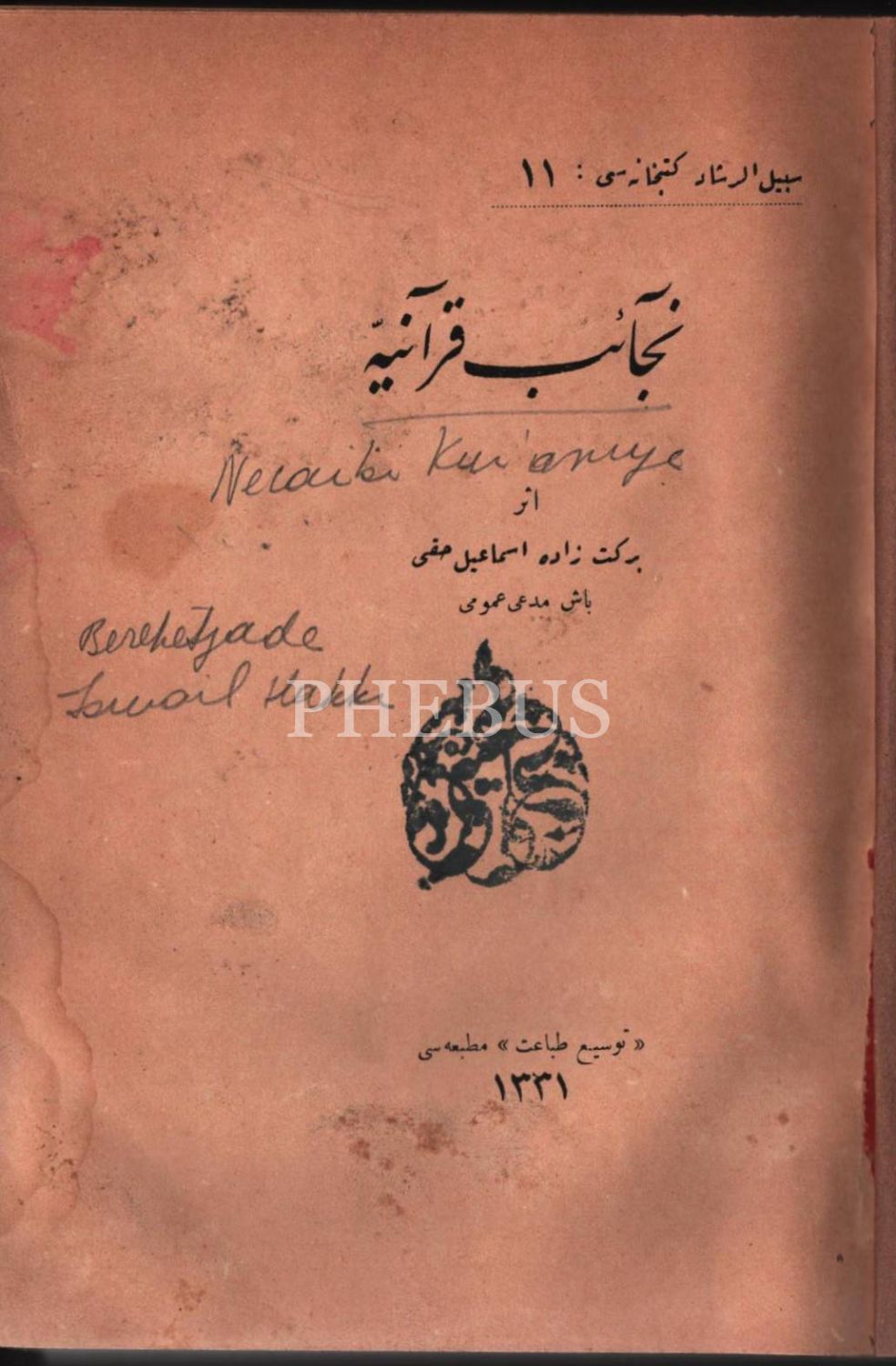 NECÂİB-İ KUR´ÂNİYYE, Bereketzâde İsmail Hakkı, Tevsi-i Tıbaat Matbaası, 1331, 432 s., 14x20 cm