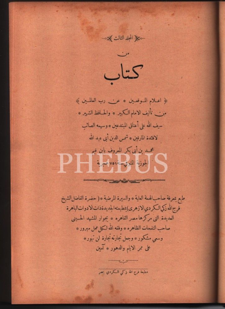 Arapça İ´LÂMÜ´L-MUVAKKIÎN AN RABBİ´L-ÂLEMÎN (3. Cilt), İbn Kayyim el-Cevziyye, Mısır, 568 s., 21x28 cm