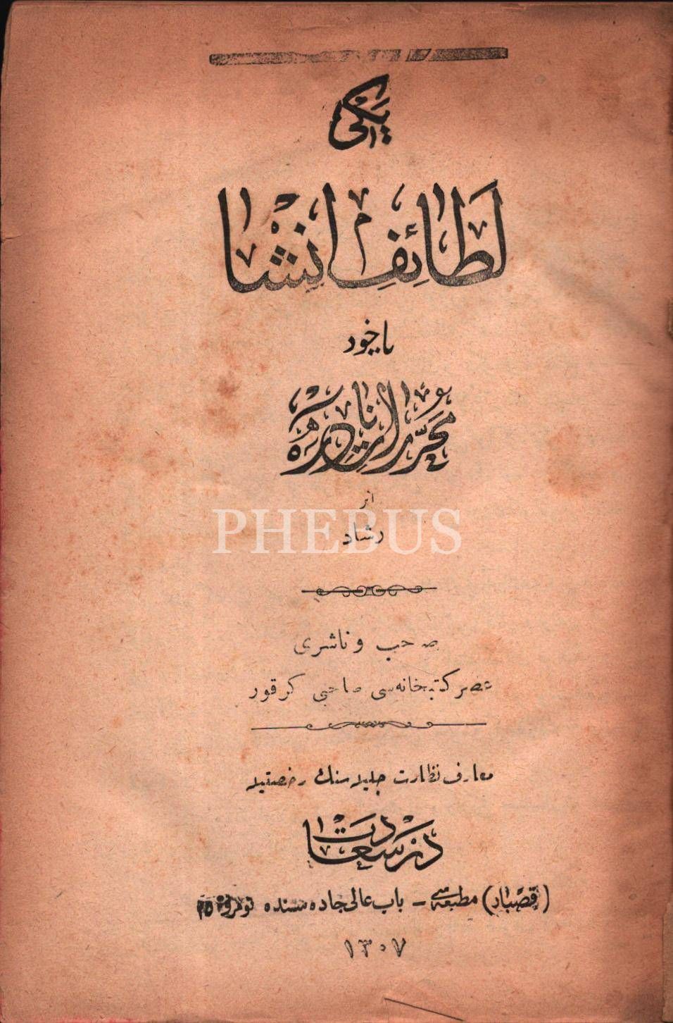 YENİ LETÂİF-İ İNŞÂ YÂHÛD MUHARRERÂT-I NÂDİRE [Antoloji], Reşad, Kasbar Matbaası, İstanbul 1307, 217 s., 13x18 cm, ciltsiz haliyle