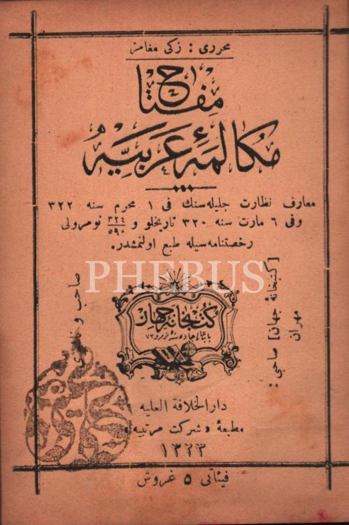 MİFTÂHU MÜKÂLEME-İ ARABİYYE [Arapça Konuşma Rehberi], Zeki Megamiz, Şirket-i Mürettibiye Matbaası, İstanbul 1323, 230 s., 10x14 cm