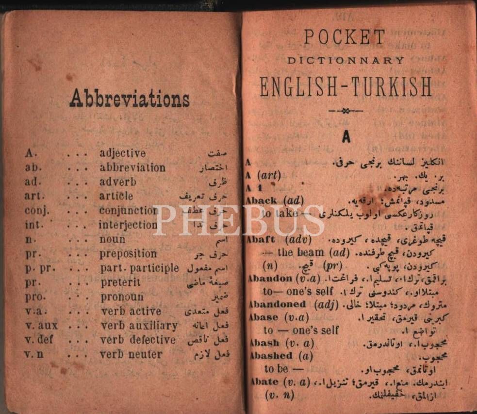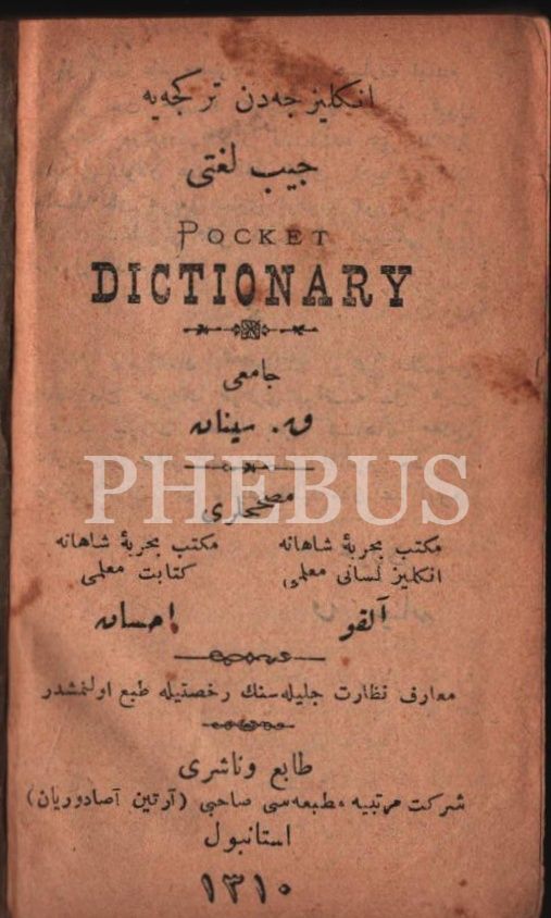 İNGİLİZCEDEN TÜRKÇEYE [Osmanlıca] CEB LÜGATİ, derl. K. Sinan, Şirket-i Mürettibiye Matbaası, İstanbul 1310, 815 s., 7x11 cm