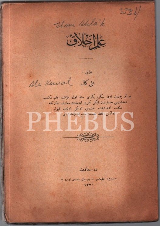 İLM-İ AHLÂK, Ali Kemal, Sabah Matbaası, İstanbul 1330, 300 s., 14x21 cm, ciltsiz ve formaları ayrık haliyle