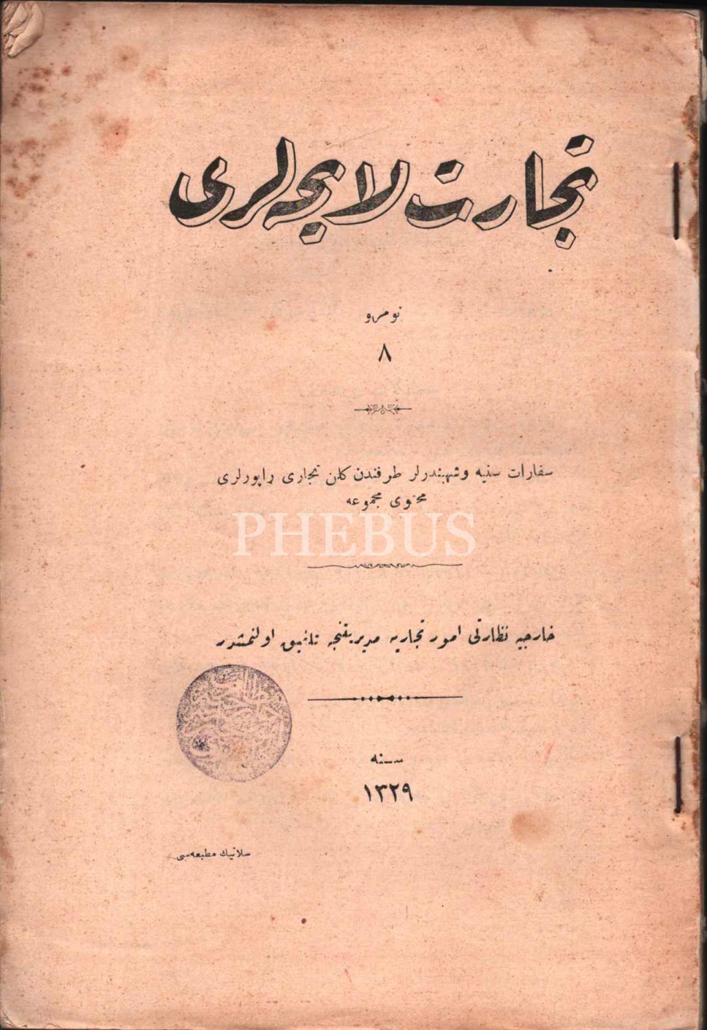 TİCÂRET LÂYİHALARI (No: 8), Selanik Matbaası, 1329, 274 s., 16x24 cm, ciltsiz haliyle