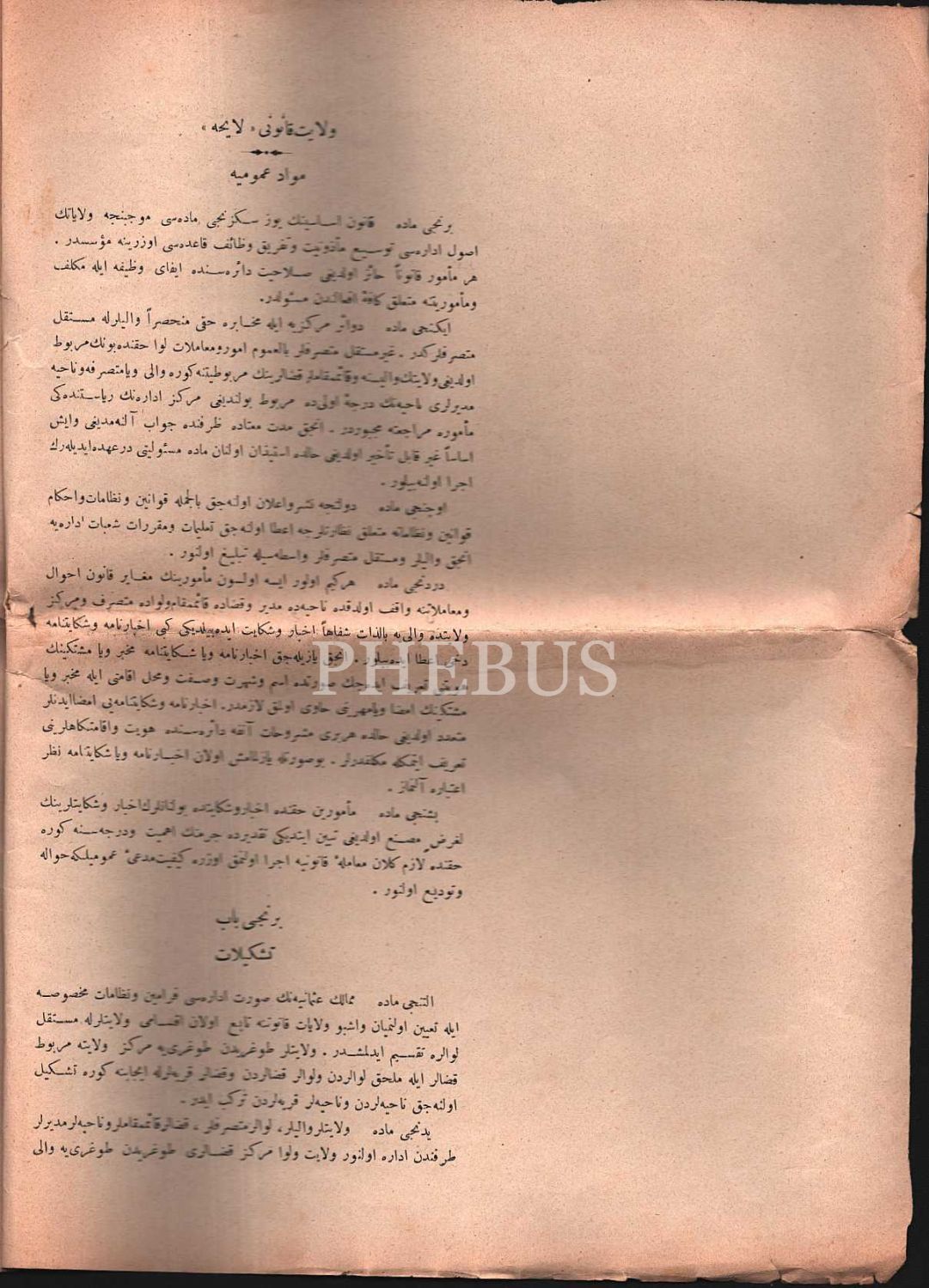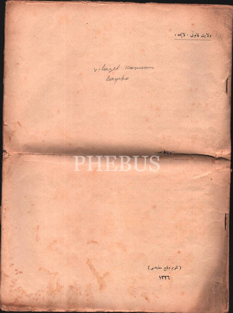 VİLÂYÂT KÂNÛNU- LÂYİHA, Takvim-i Vekayi Matbaası, 1326, 31 s., 25x34 cm