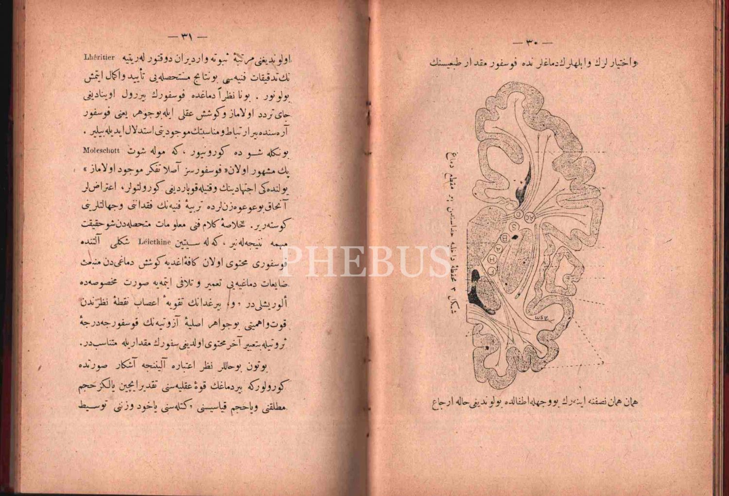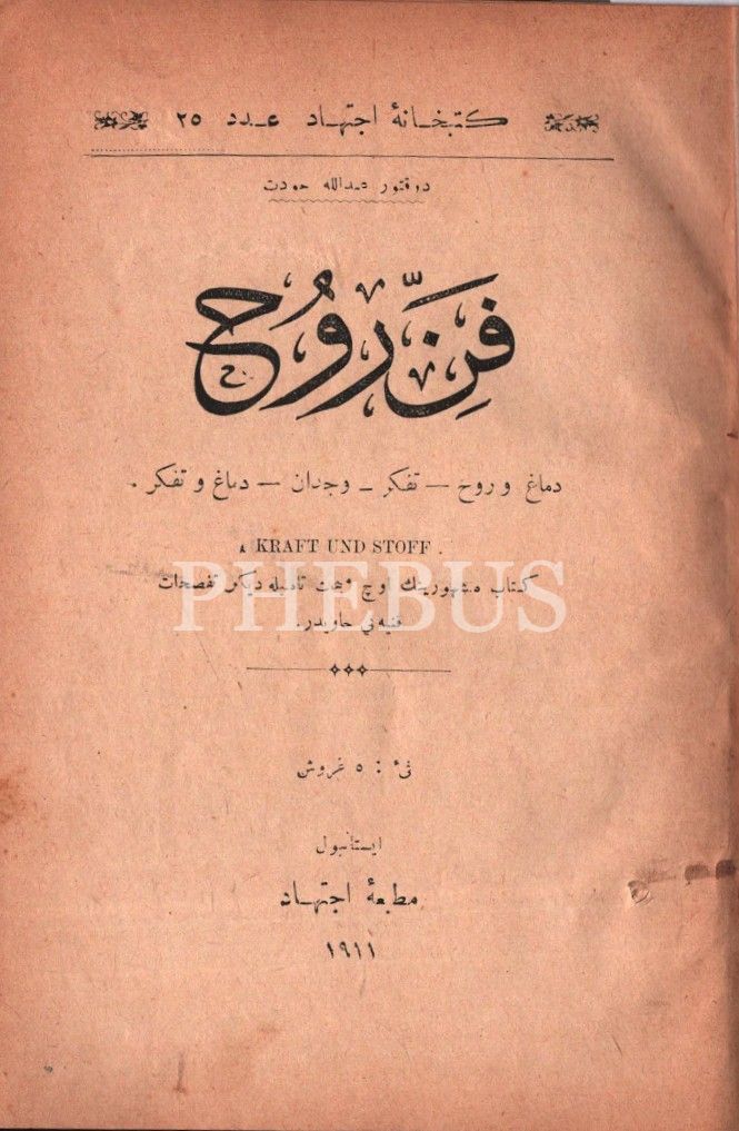 "Dimag ve Ruh- Tefekkür- Vicdan- Dimag ve Tefekkür" "Kraft und Stoff adlı meşhur kitabın üç başlığyla diğer fenni incelemeleri içermektedir."