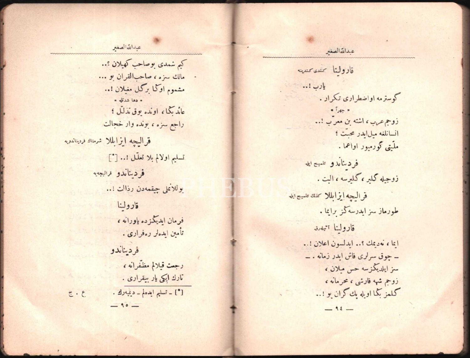 ABDULLAH ES-SAGÎR ile NAZÎFE, Abdülhak Hamid [Tarhan], Amire Matbaası, İstanbul 1335, 129 s., 13x19 cm