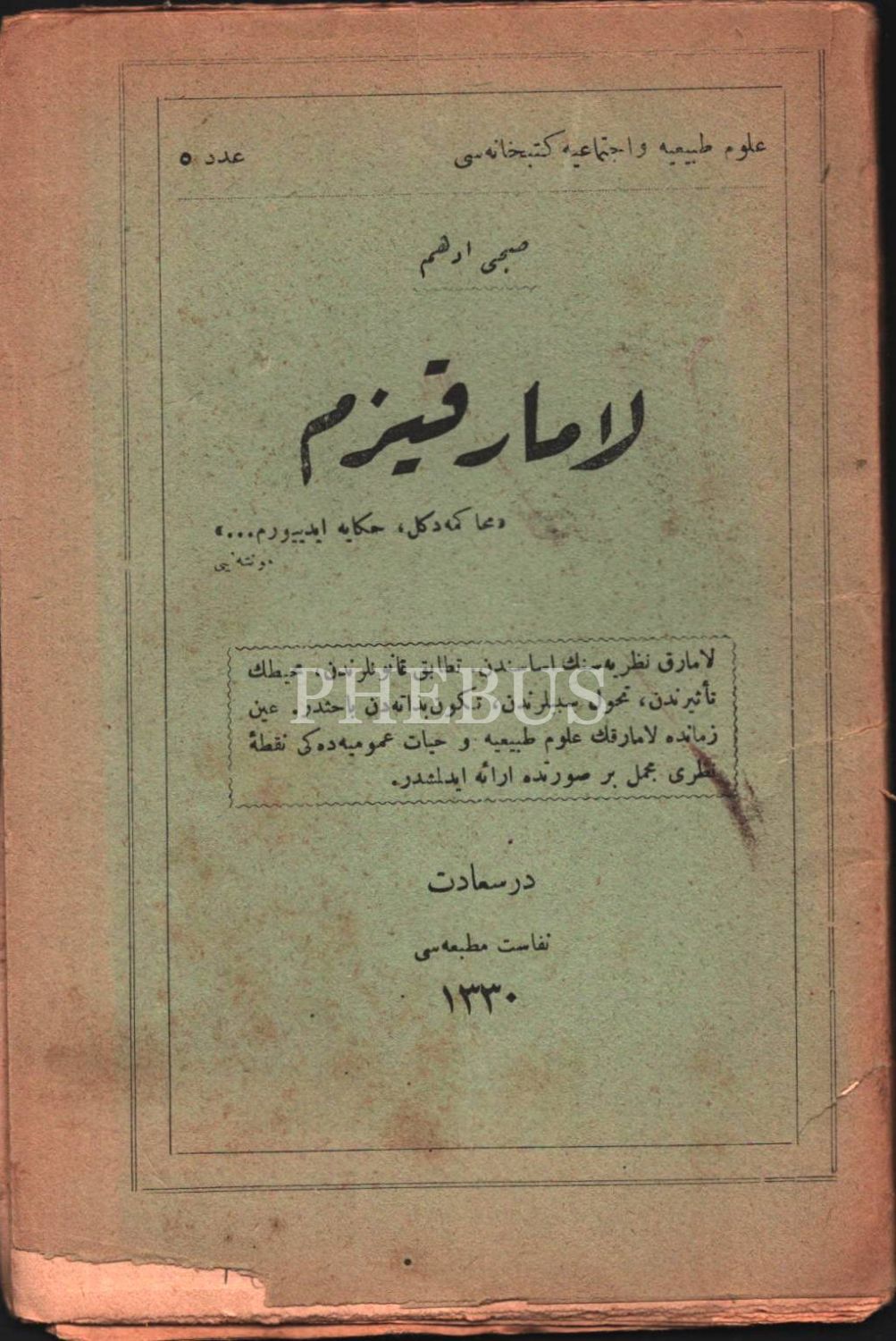 LAMARKİZM, Subhi Edhem, Nefaset Matbaası, İstanbul 1330, 46 s., 13x19 cm