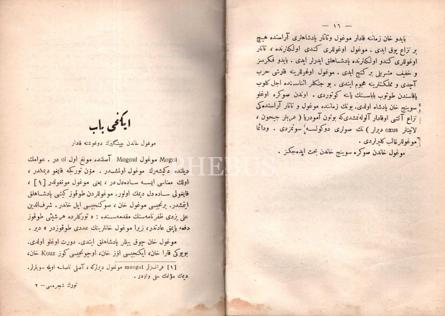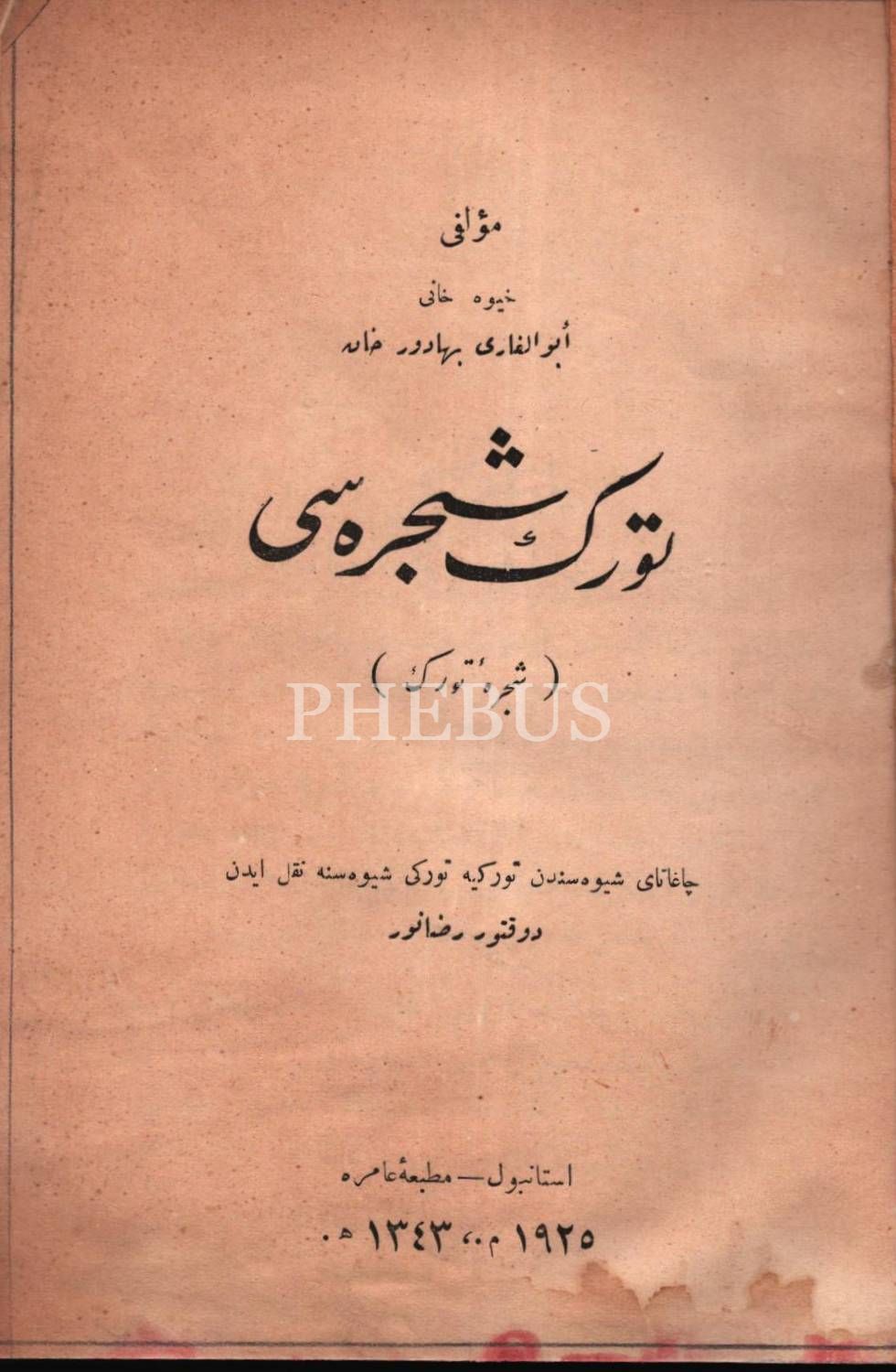 TÜRK ŞECERESİ, Hive Hanı Ebu´l-Gâzi Bahadır Han, Çağatay lehçesinden Türkiye lehçesine çev. Dr. Rıza Nur, Amire Matbaası, İstanbul 1925, 350 s., 14x20 cm