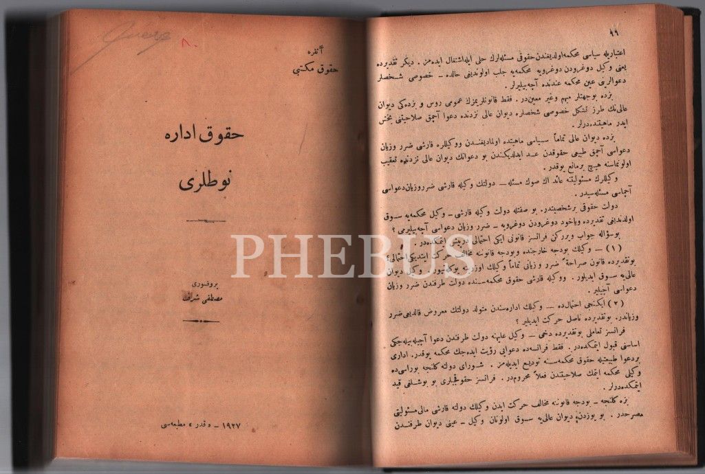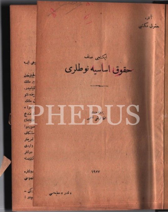 4 kitap tek ciltte: HUKÛK-I ESÂSİYYE NOTLARI, Ağaoğlu Ahmed, 96 s.; HUKÛK-I İDÂRE NOTLARI, Mustafa Şeref, 139, Kader Matbaası, 1927;