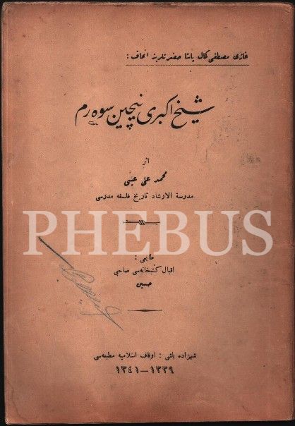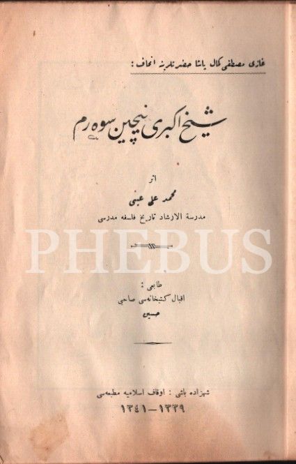 ŞEYH-İ EKBER´İ NİÇİN SEVERİM, Mehmed Ali Ayni, Evkaf-ı İslamiye Matbaası, İstanbul 1341, 87 s., 14x20 cm