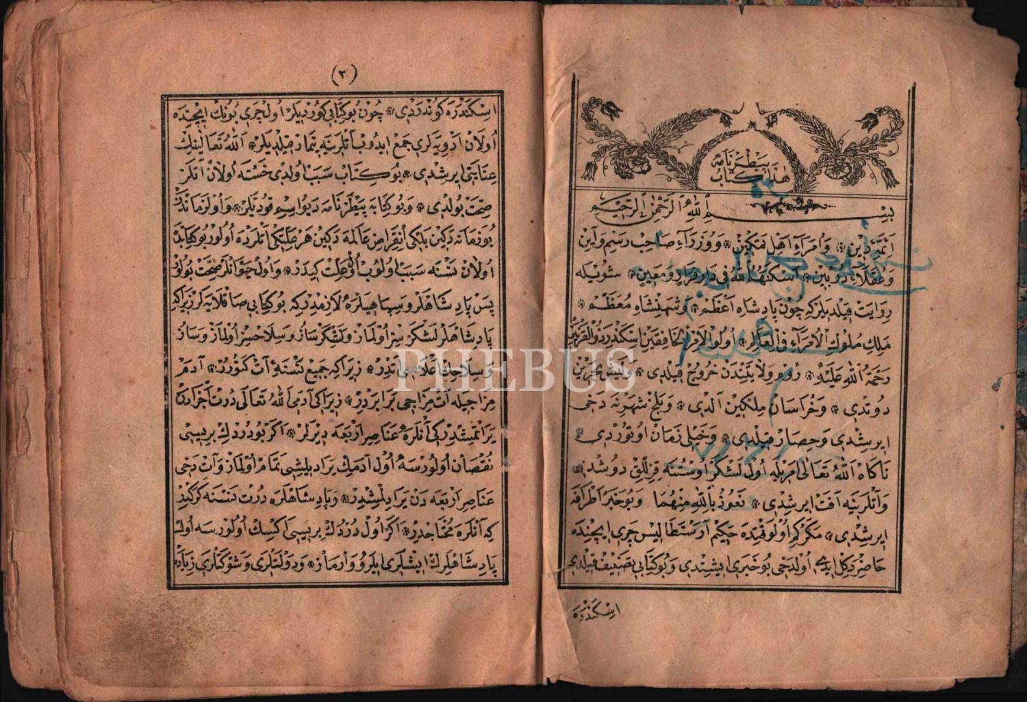 "… Aniden Allah Teala emriyle ol leşker üstüne kızıllık düşdü ve atlarına afet erişdi. [...] Ol dahi bu haberi işitdi ve bu kitabı tasnif kıldı. İskender´e gönderdi. Çun bu kitabı gördüler, ol çeri bunun içinde olan ilaçları derleyip atlarına tımar kıldılar. Allahu Teala´nın inayetine erişdi. Bu kitab sebeb oldu hasta olan atlar sıhhat buldu. Ve bu kitaba Baytarnâme deyu isim kodula..."