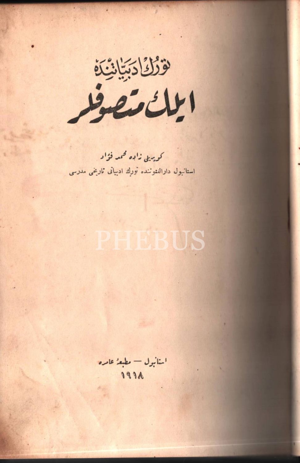 TÜRK EDEBİYYÂTINDA İLK MUTASAVVIFLAR, Köprülüzâde Mehmed Fuad, Amire Matbaası, İstanbul 1918, 446 s., 16x24 cm