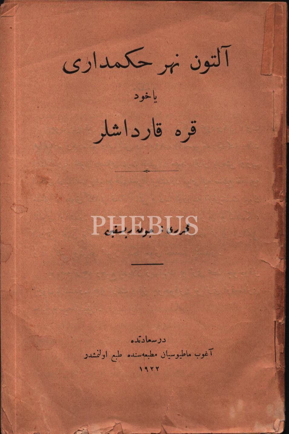 ALTUN NEHİR HÜKÜMDÂRI YÂHÛD KARA KARDEŞLER, John Riskin, Agob Matyosyan Matbaası, İstanbul 1922, 47 s., 12x18 cm, ciltsiz haliyle