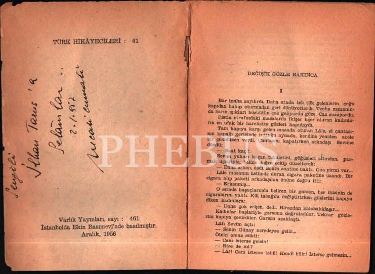 Edebiyata şiirle başlayan; tiyatroyla, romanla, denemeyle devam eden ve yazdığı her türde çok sayıda ödül kazanmış olan Necati Cumalı´nın (1921 - 2001) ikinci hikâye kitabının ilk baskısı… Edebiyatımızın en "aksi" yazarlarından İlhan Tarus için imzalanmış. / Sırtında ayrılma ve sayfa kenarlarında küçük yırtılmalar var.