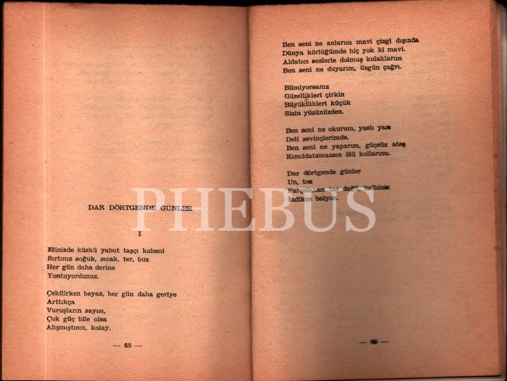 Modern Türk şiirinin hiçbir akımına katılmayan ama her akımdan biraz etkilenen ve daha çok da her akımı önemli ölçüde etkileyen; en çalışkan, en üretken şairi, oyun yazarı, çevirmeni ve edebiyat öğretmeni Behçet Necatigil´in (1916 - 1979), dördüncü şiir kitabının ilk baskısı...