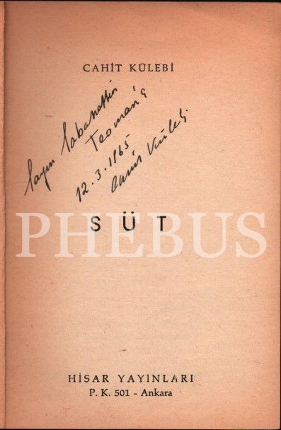 SÜT, Cahit Külebi, 1965, Hisar Yayınları, 48 sayfa, 13x18 cm… İthaflı ve imzalı…