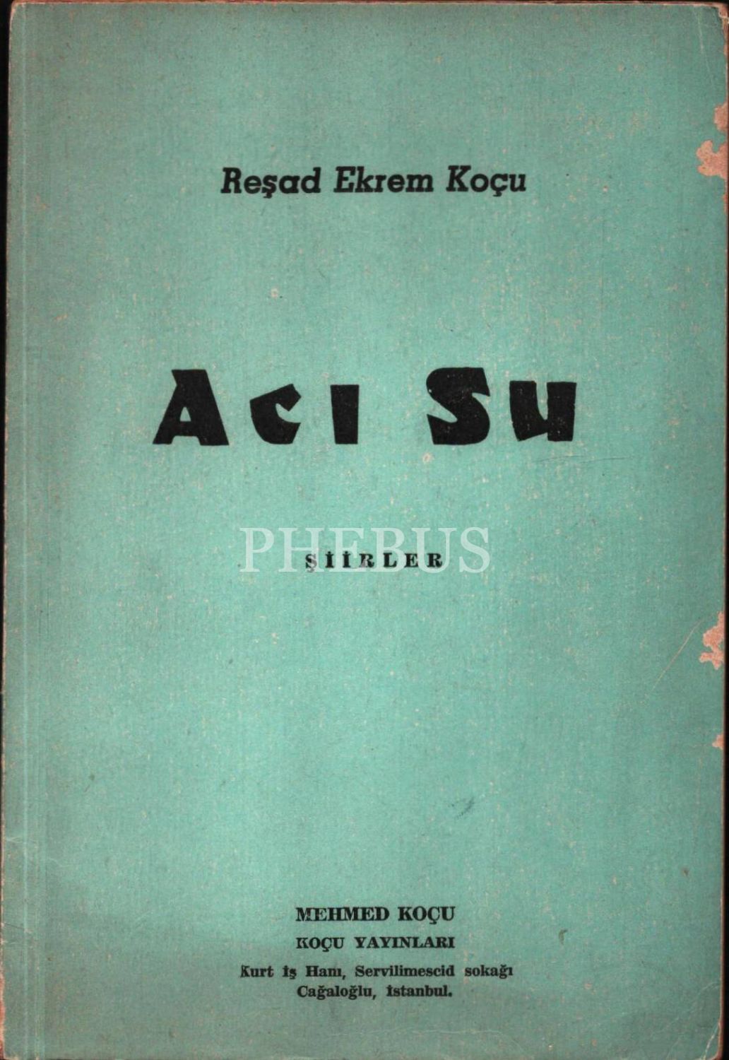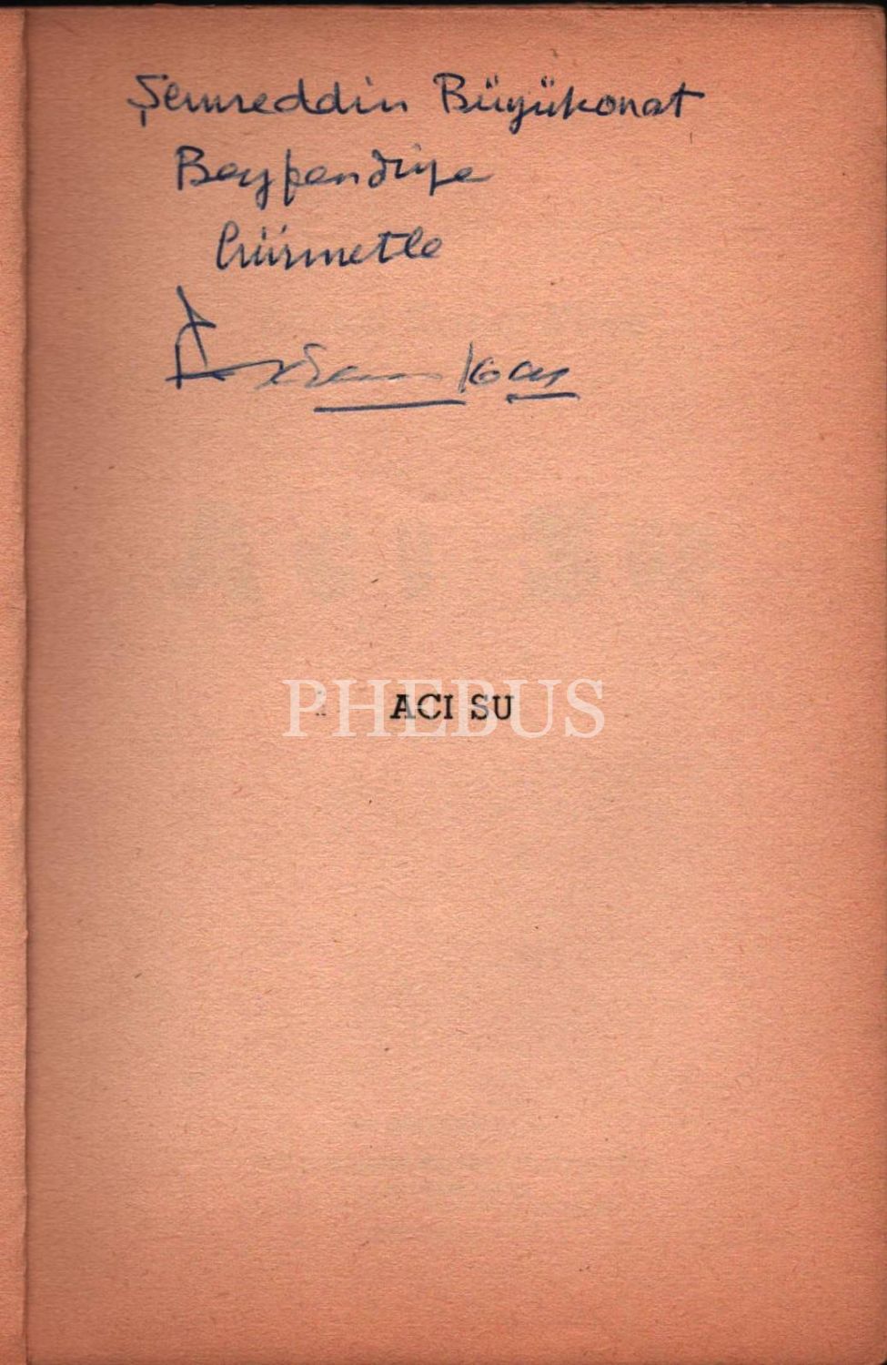 ACI SU, Reşat Ekrem Koçu, 1965, Koçu Yayınları, 42 + sayfa, 14x20 cm… İthaflı ve imzalı...