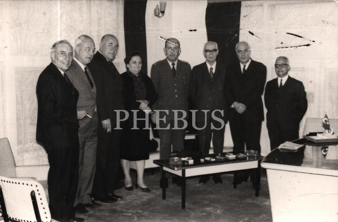 Atatürk´ün manevi kızı Prof. Dr. Afet İnan ve bir terör saldırısında hayatını yitirmiş olan Prof. Dr. Cavit Orhan Tütengil, bir grup asker ve siyasetçiyle birlikte…