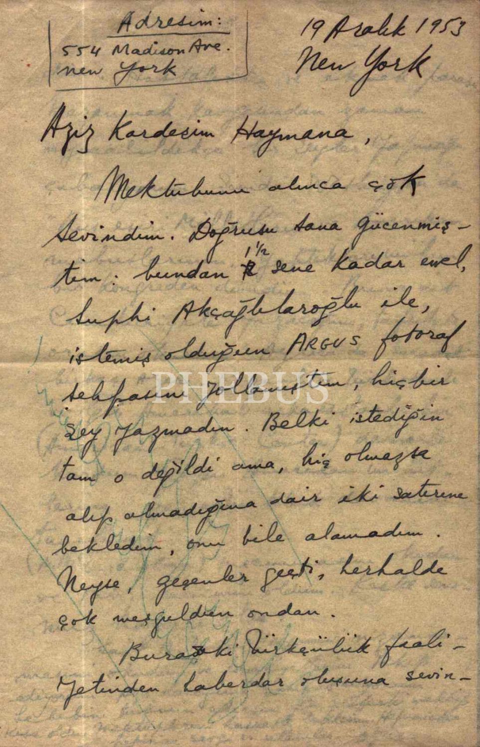REHA OĞUZ TÜRKKAN´IN NEW YORK´TAN GÖNDERDİĞİ MEKTUP (2 sayfa), 14x21,5 cm