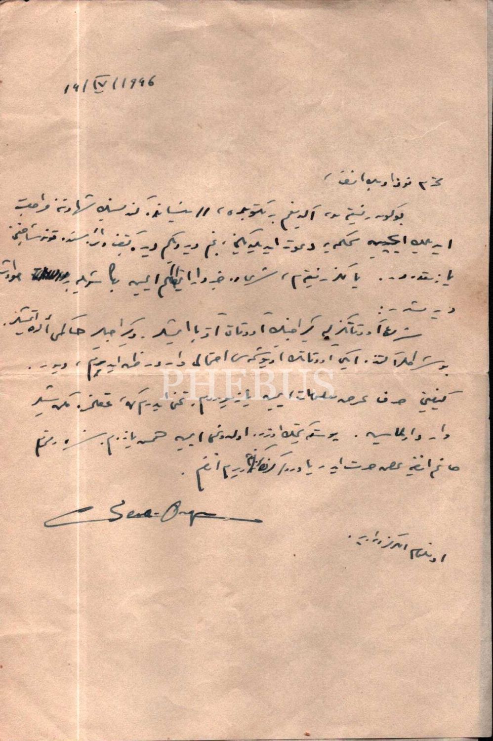 CEMİL SENA ONGUN TARAFINDAN GÖNDERİLMİŞ OSMANLICA MEKTUP, 15x23 cm