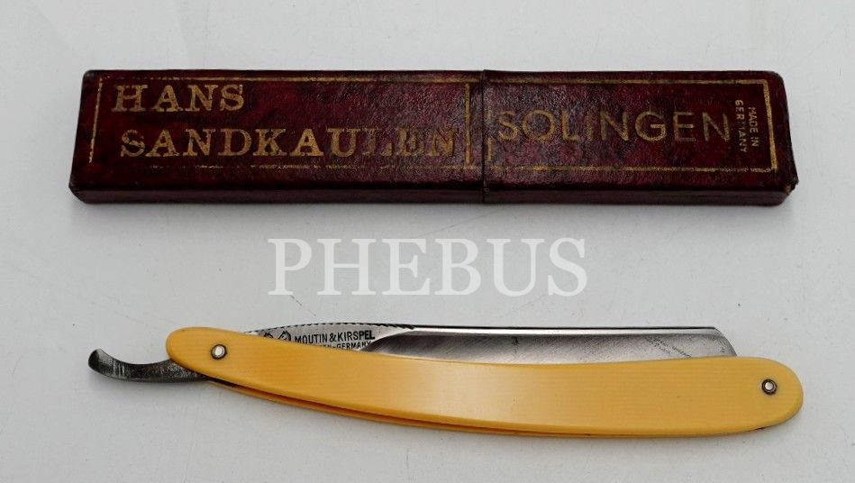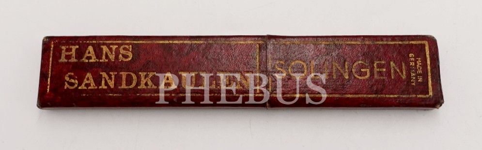 Alman malı HANS SANDKAULEN SOLINGEN marka kutusunda "Moutin&Kirspel/Solingen- Germany" damgalı ustura, 17x3x1 cm