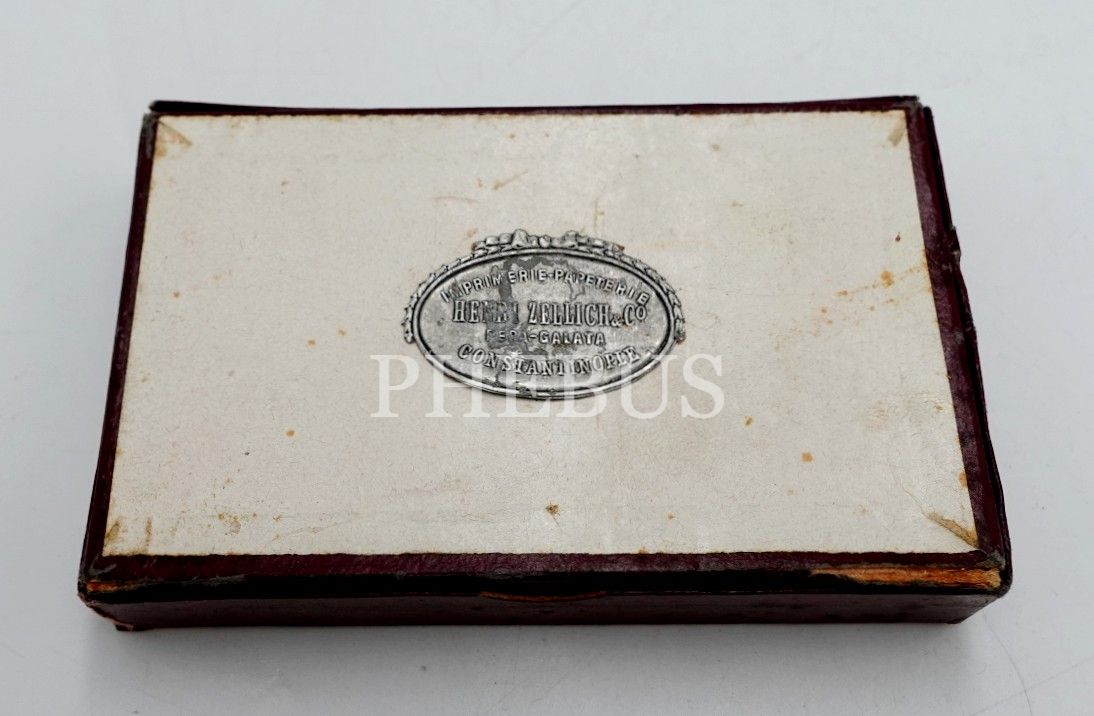 Arka yüzü gofre "Imprimerie Papeterie HENRI ZELLICH & Co Pera-Galata Constantinople" etiketli karton kutu, 10x6x2 cm