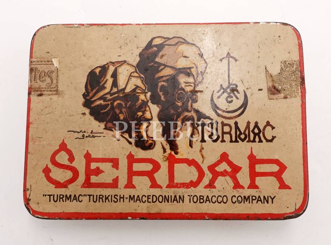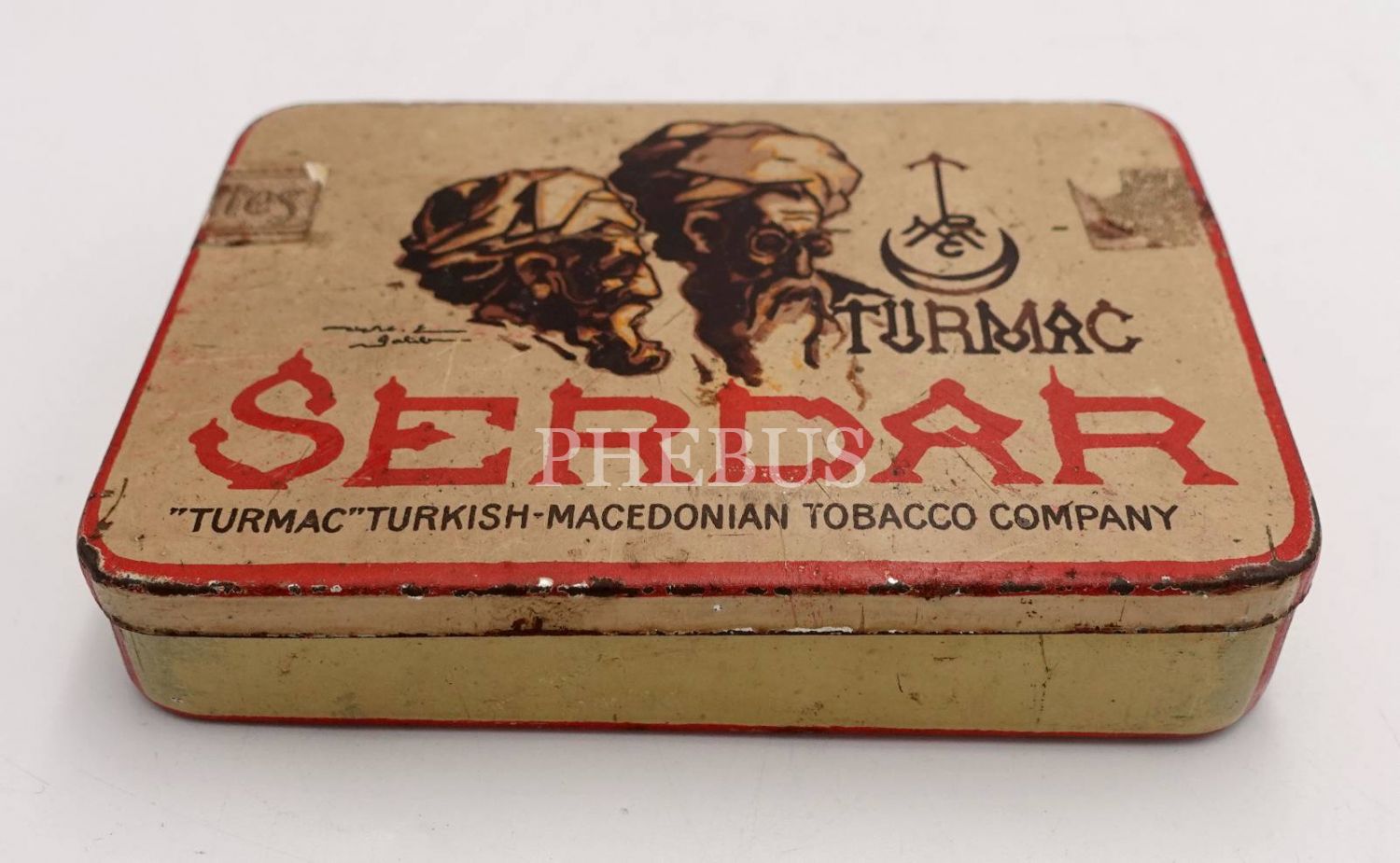 TURMAC (Turkish-Macedonian Tobacco Company) marka teneke SERDAR sigara kutusu, 10x8x2 cm