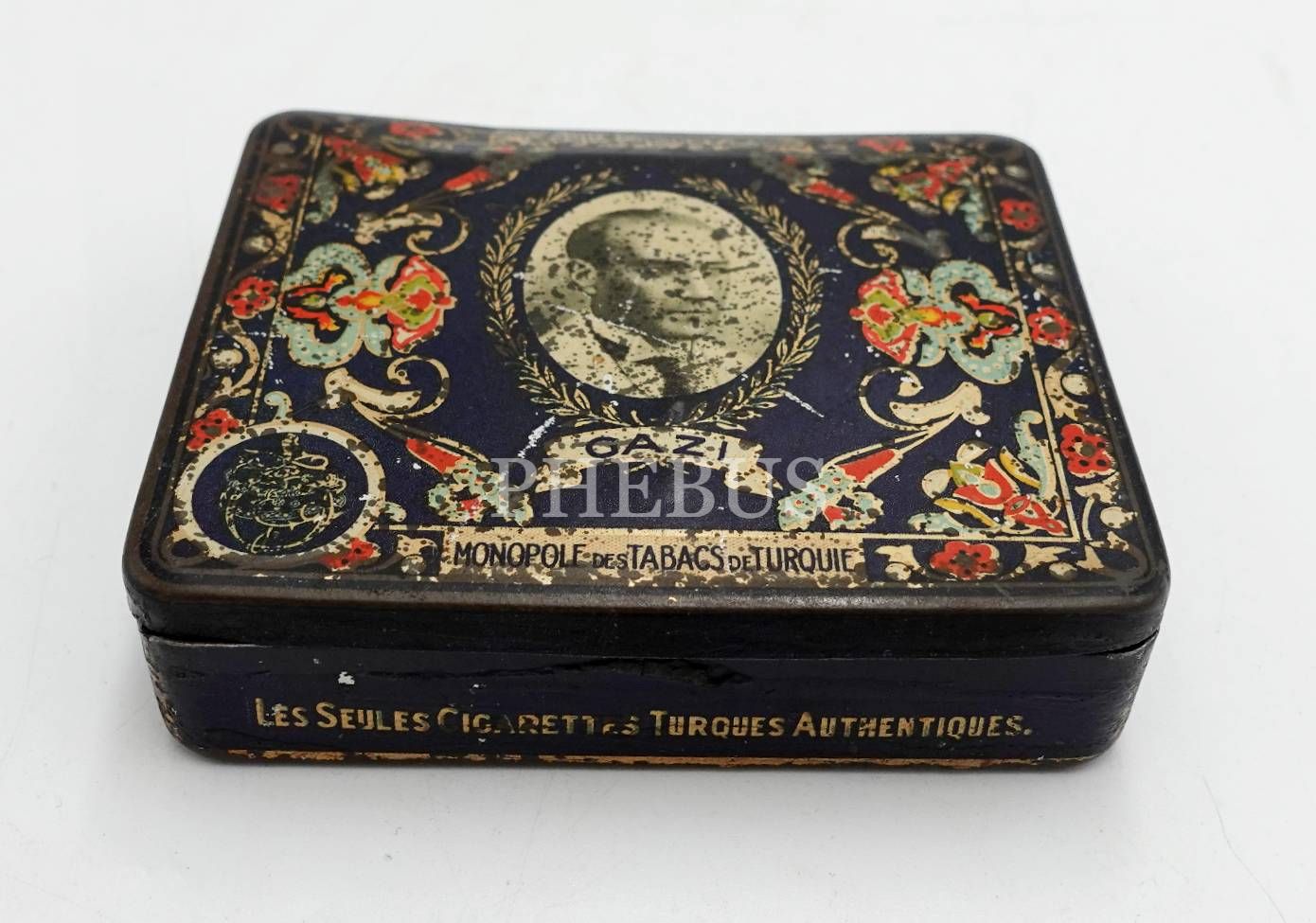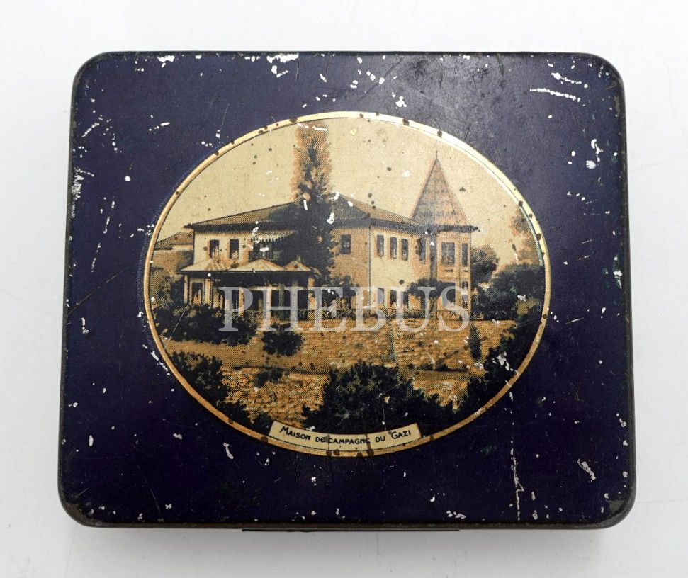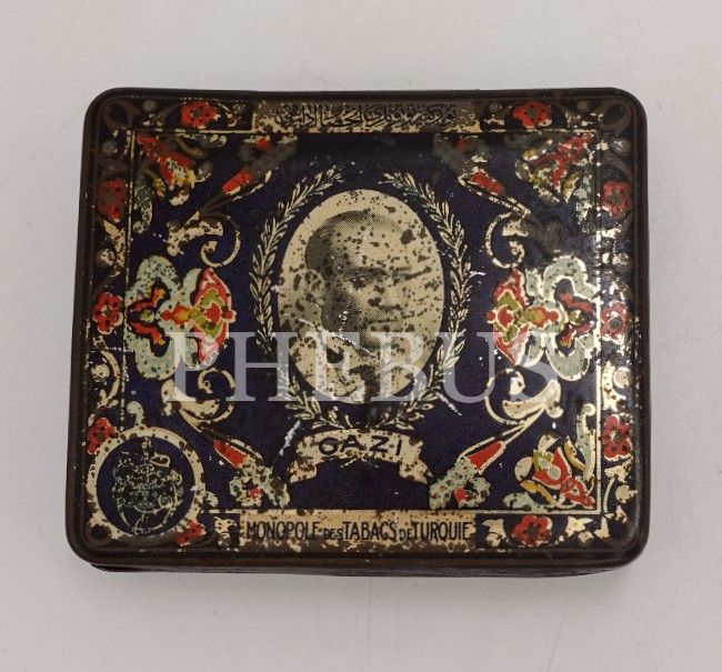 Türkiye Tütünleri İnhisar İdaresi´nden Atatürk ve Gazi Köşkü görselli teneke GAZİ sigarası kutusu, 9x7x2 cm