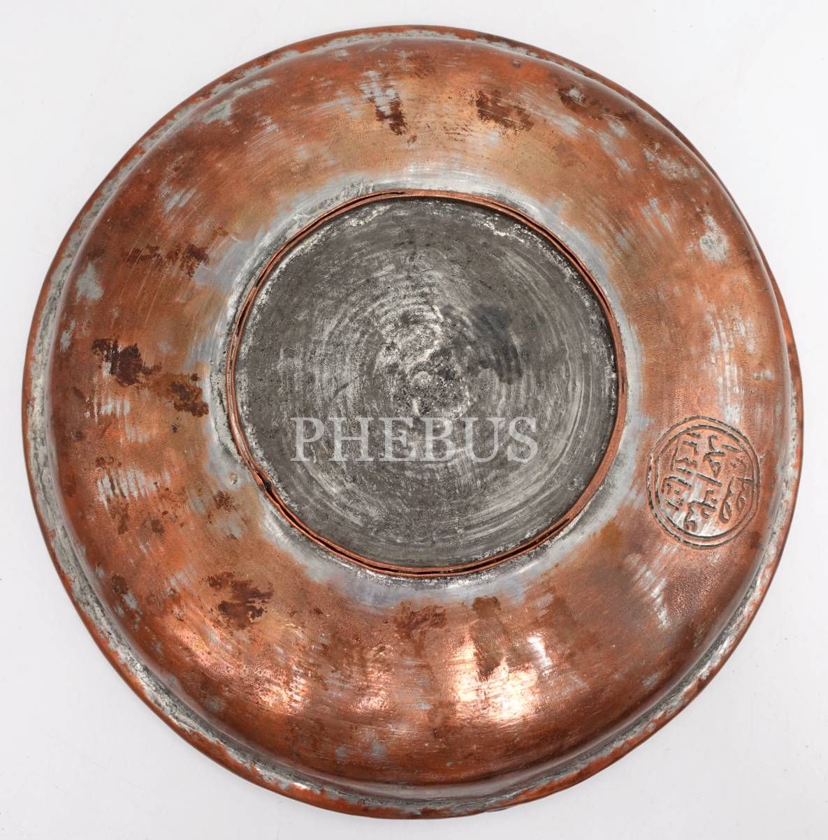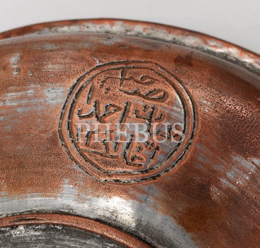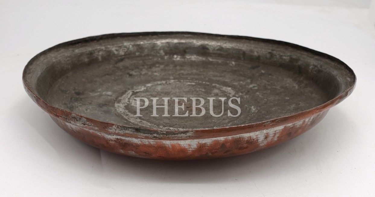 Osmanlıca yazılı, 1241 tarihli bakır sahan, çap: 26 cm, ağırlık: 670 gr