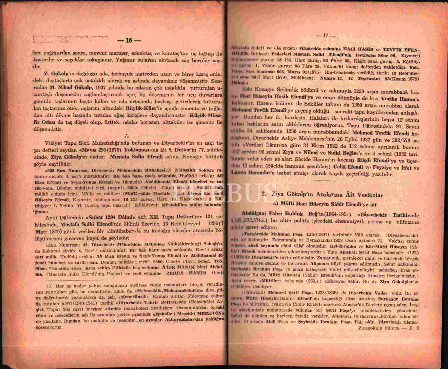 Kırzıoğlu M. Fahrettin´den ithaflı ve imzalı Yazılı Vesikalara Göre: Ziyagökalp Müzesi ve Ziya Gökalp, Işıl Matbaası, İstanbul - 1956, 96 sayfa, 17x25 cm