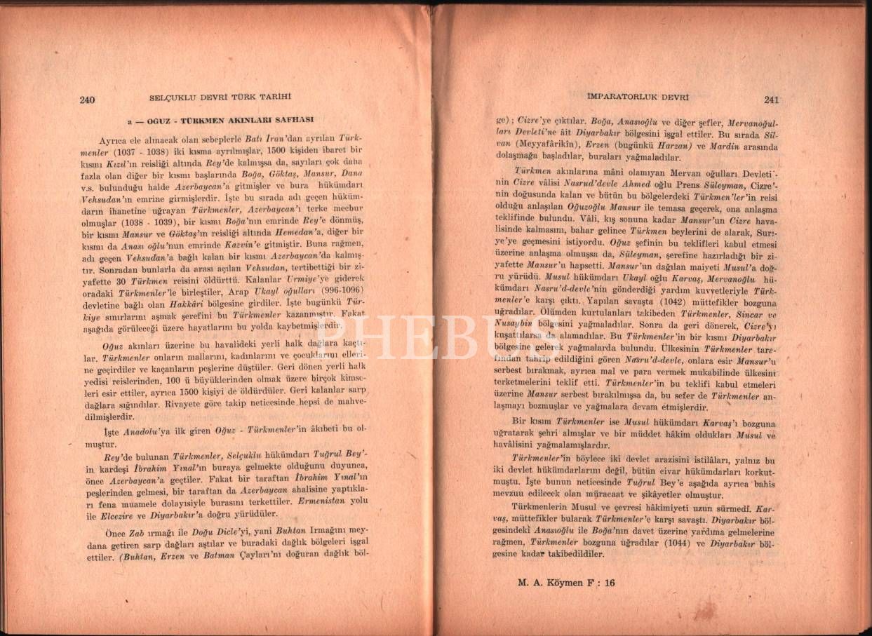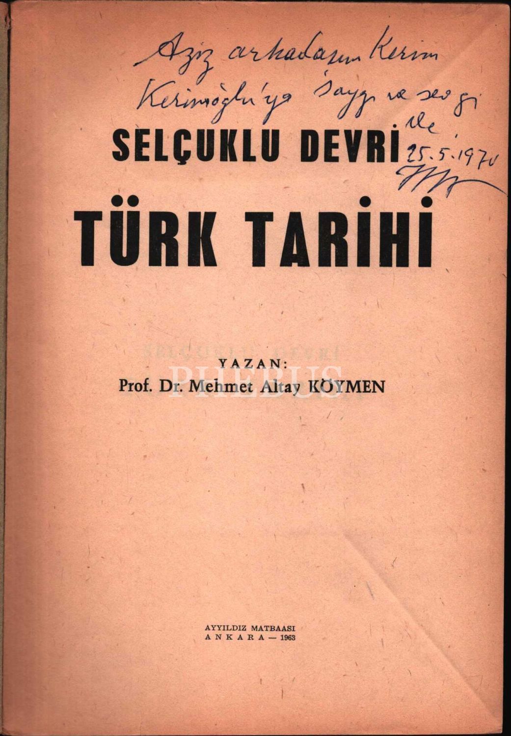 Mehmet Altay Köymen´den ithaflı ve imzalı SELÇUKLU DEVRİ TÜRK TARİHİ, Ayyıldız Matbaası, Ankara - 1963, 310 sayfa, 17x24 cm, sayfaları açılmamış