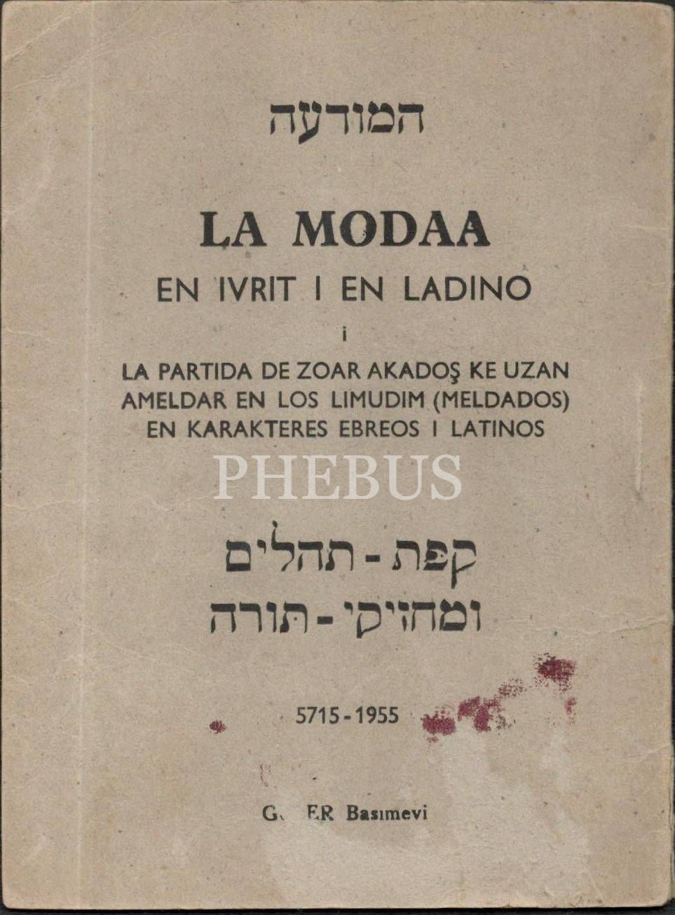 LA MODAA ( המודעה ), İstanbul Güler Basımevi 5715-1955 24 s., 12x16,5 cm