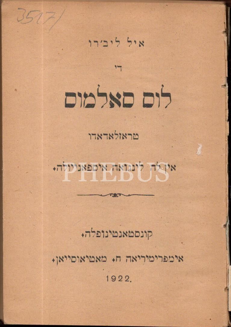 Kabartmalı cildinde LOS SALMOS [Ladino İlahiler], Mateossian Matbaası, Constantinople 1922, 239 s., 9,5x14 cm
