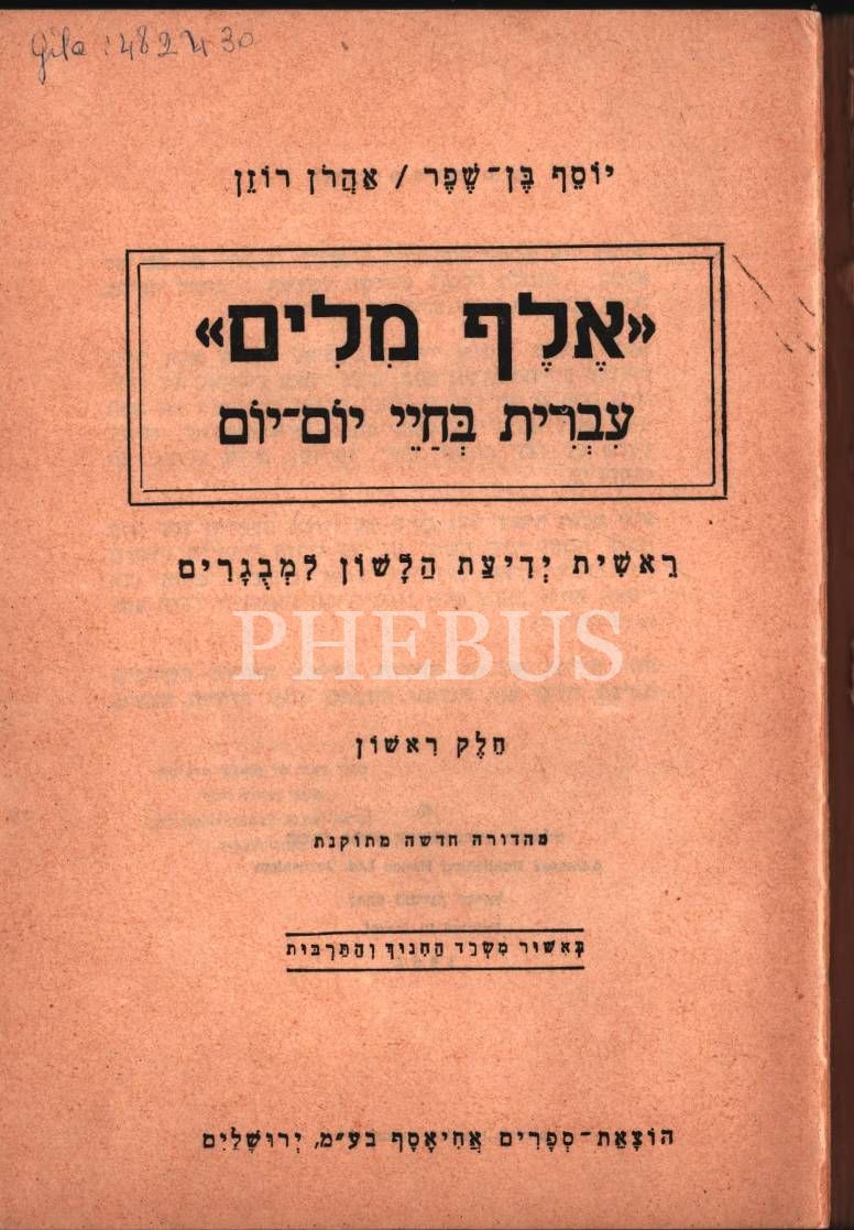 ELEF MİLİM İVRİT BEHAYEY YOM-YOM [Günlük Hayatta 1000 İbranice Kelime- 1. Bölüm], Yosef Ben Shefer-Aharon Rozen, Kudüs Ahiasaf Kütüphanesi, Araz Matbaası, 1962, 140 s., 15x22 cm