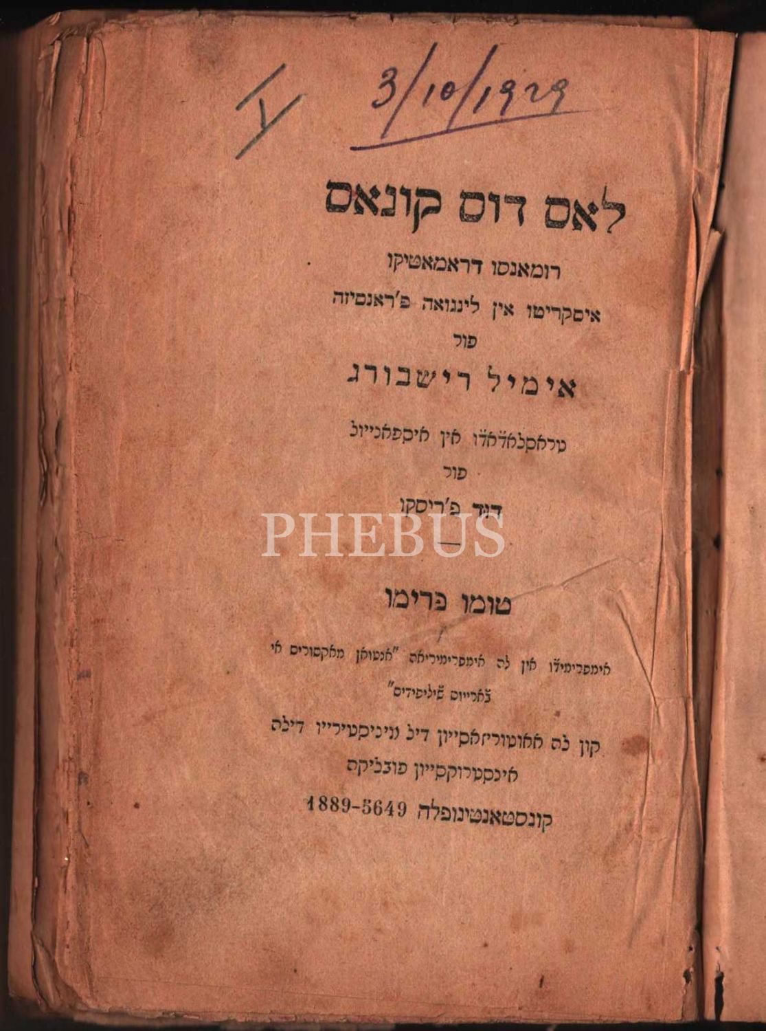 Kabartmalı karton cildinde LAS DOS KUNAS [2 Salıncak- Roman], Émile Richebourg, Fransızcadan Ladino diline çev. David Fresco, Constantinople 1889 (5649), 442 s., 13x20 cm