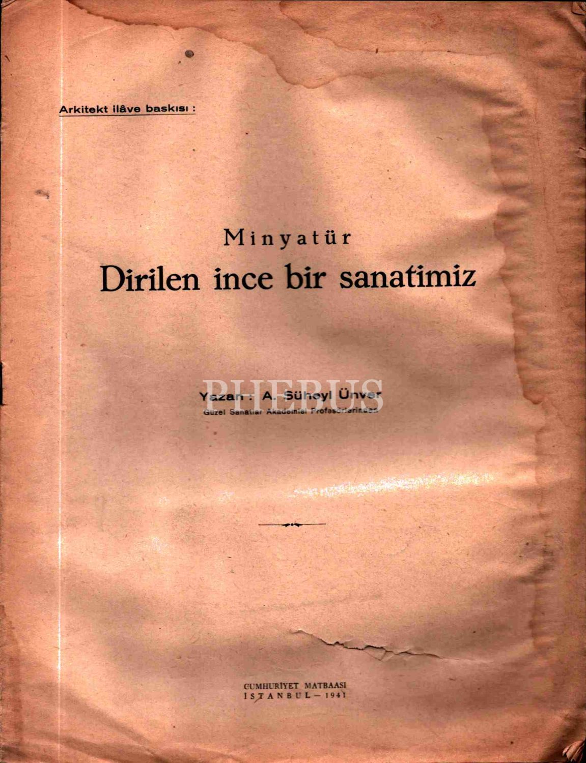 MİNYATÜR: DİRİLEN İNCE BİR SANATIMIZ, A. Süheyl Ünver, Arkitekt İlave Baskısı, İstanbul, 1941, 23x30 cm
