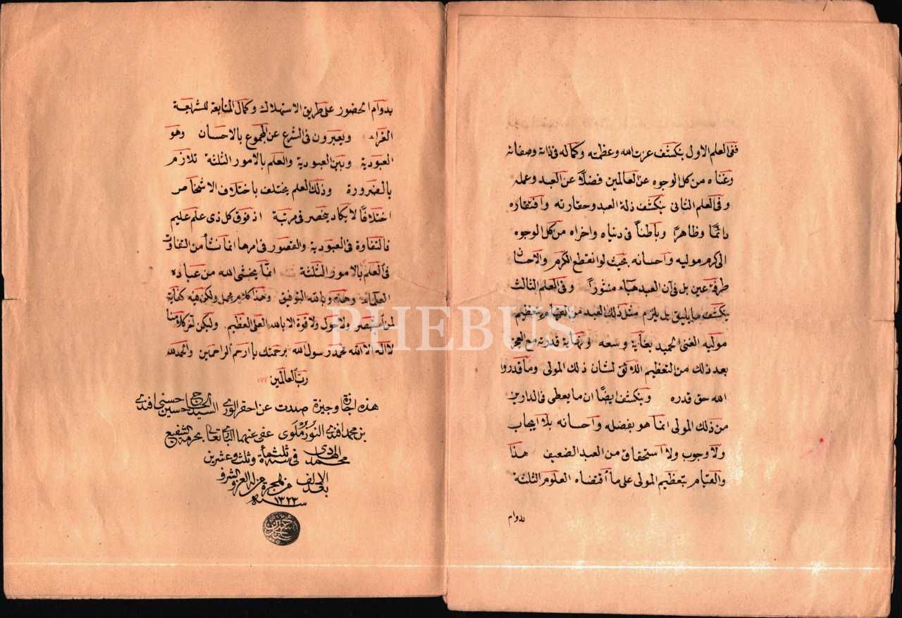Seyyid Hacı Hasan Hüseyin Efendi tarafından Hafız Osman ez-Zeki Efendi´ye verilen 1323 tarihli ilmiye icazetnamesi, 10 sayfa, 18x24 cm