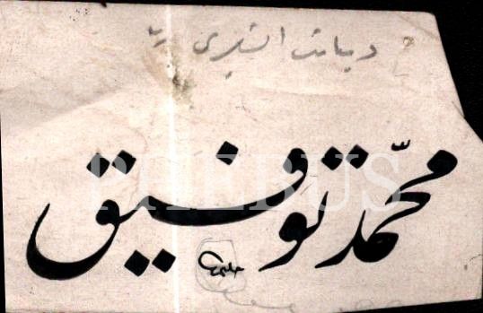 Halîm (Özyazıcı) ketebeli, Diyanet İşleri Reisi Mehmed Tevfik için yapılmış imza tasarımı, 4x7 cm