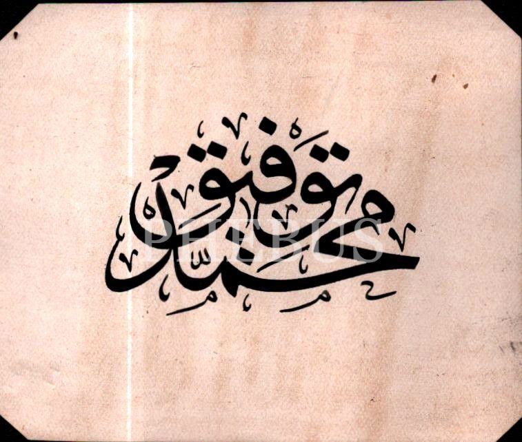 Sülüs yazı ile imza tasarımı: "Mehmed Tevfîk", 9x10 cm
